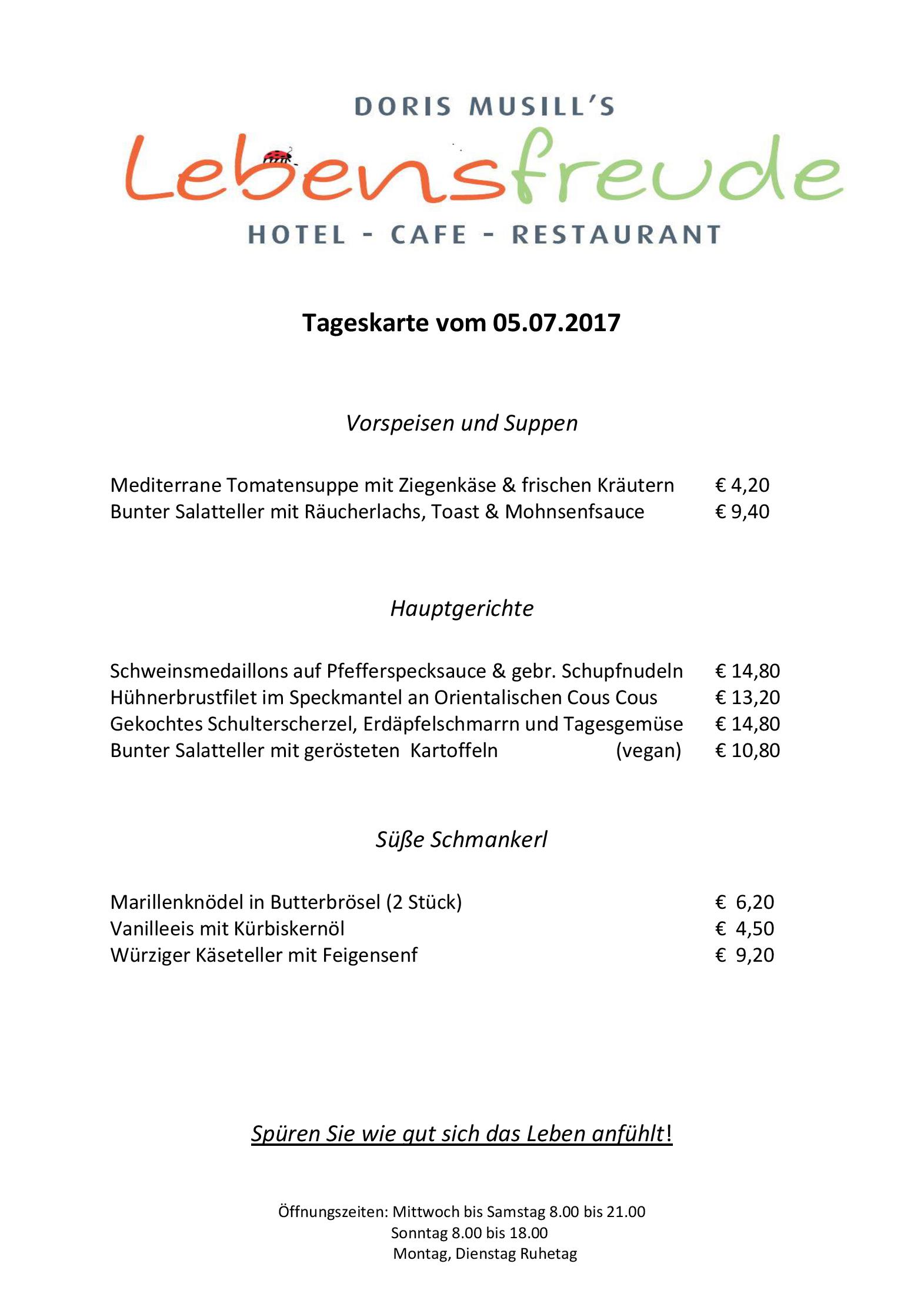 Download der Speisekarte des Lebensfreude Hotel Caf-Restaurant in Bad Mitterndorf in Bad Mitterndorf im PDF-Format