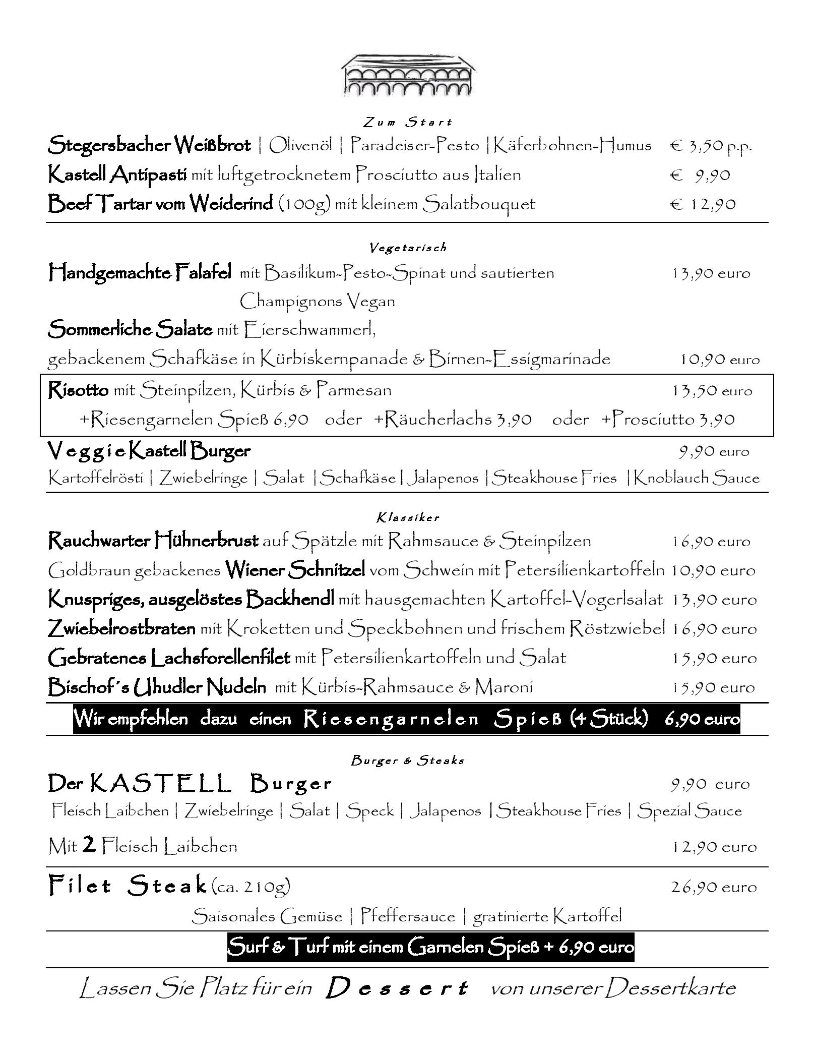 Download der Speisekarte des Restaurant Kastell Stegersbach in Stegersbach im PDF-Format