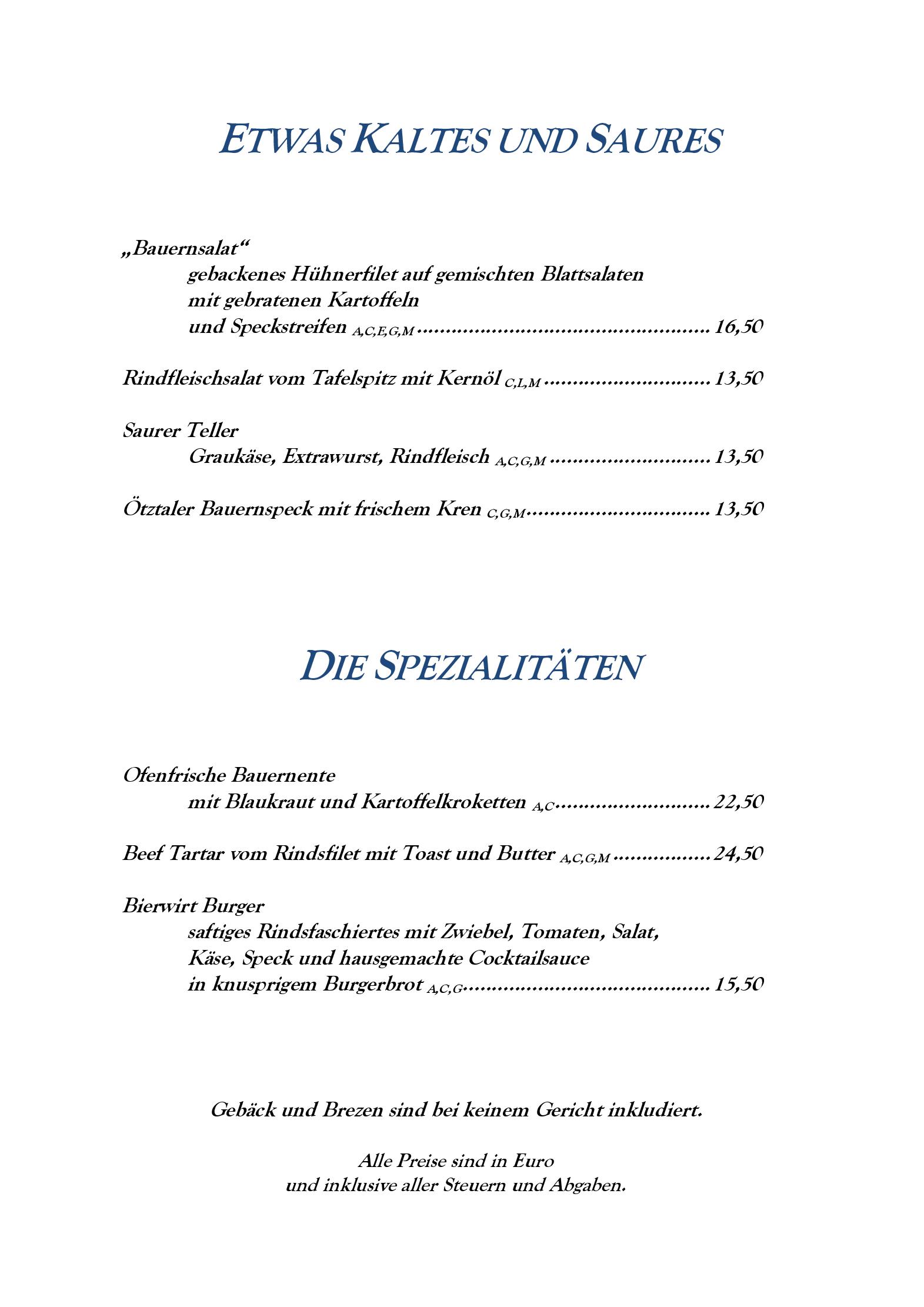 Download der Speisekarte des Restaurant Hotel Bierwirt GmbH in Innsbruck im PDF-Format