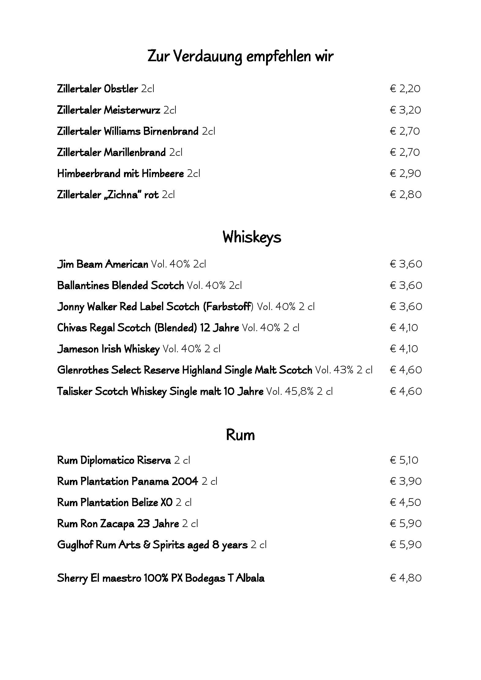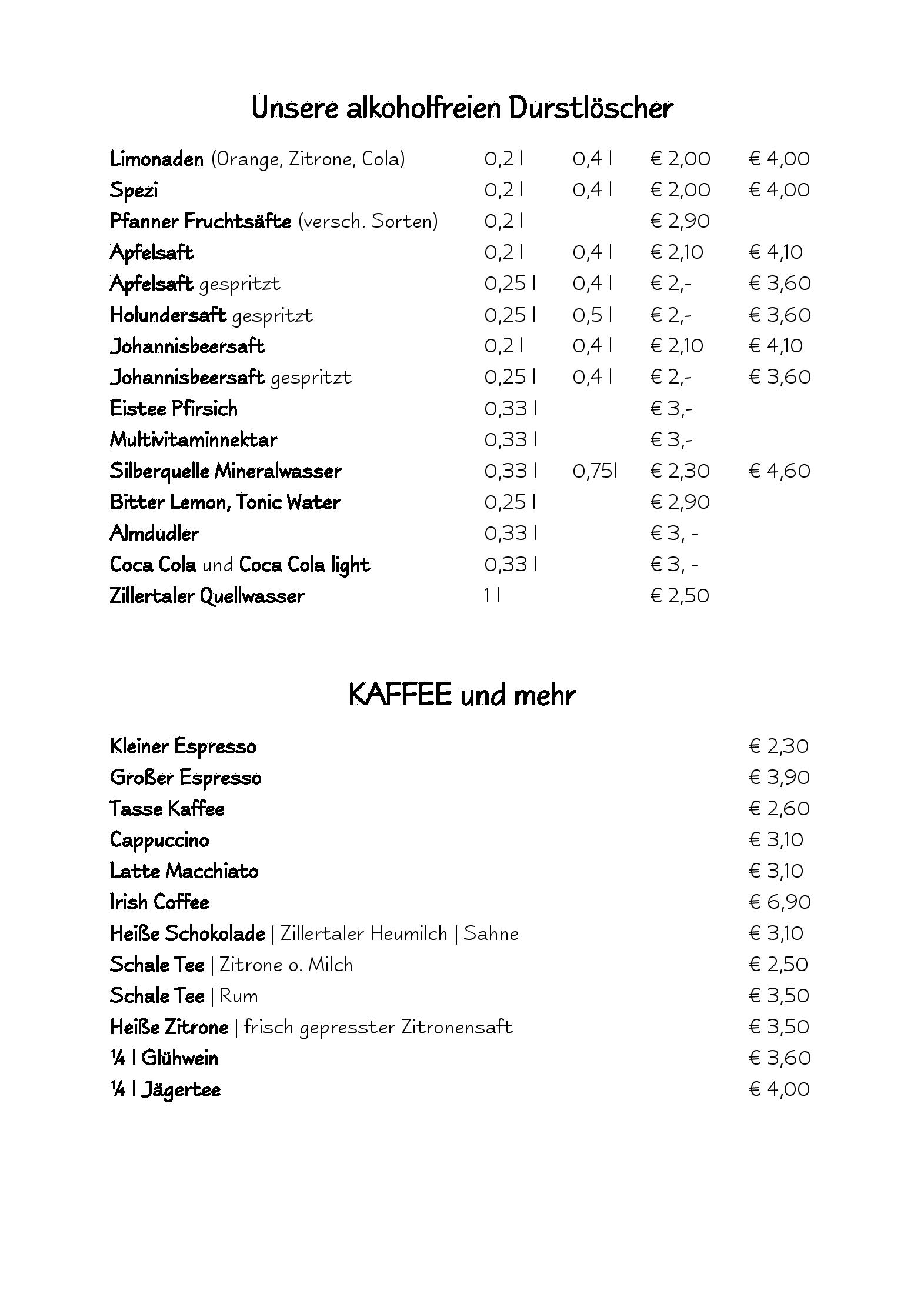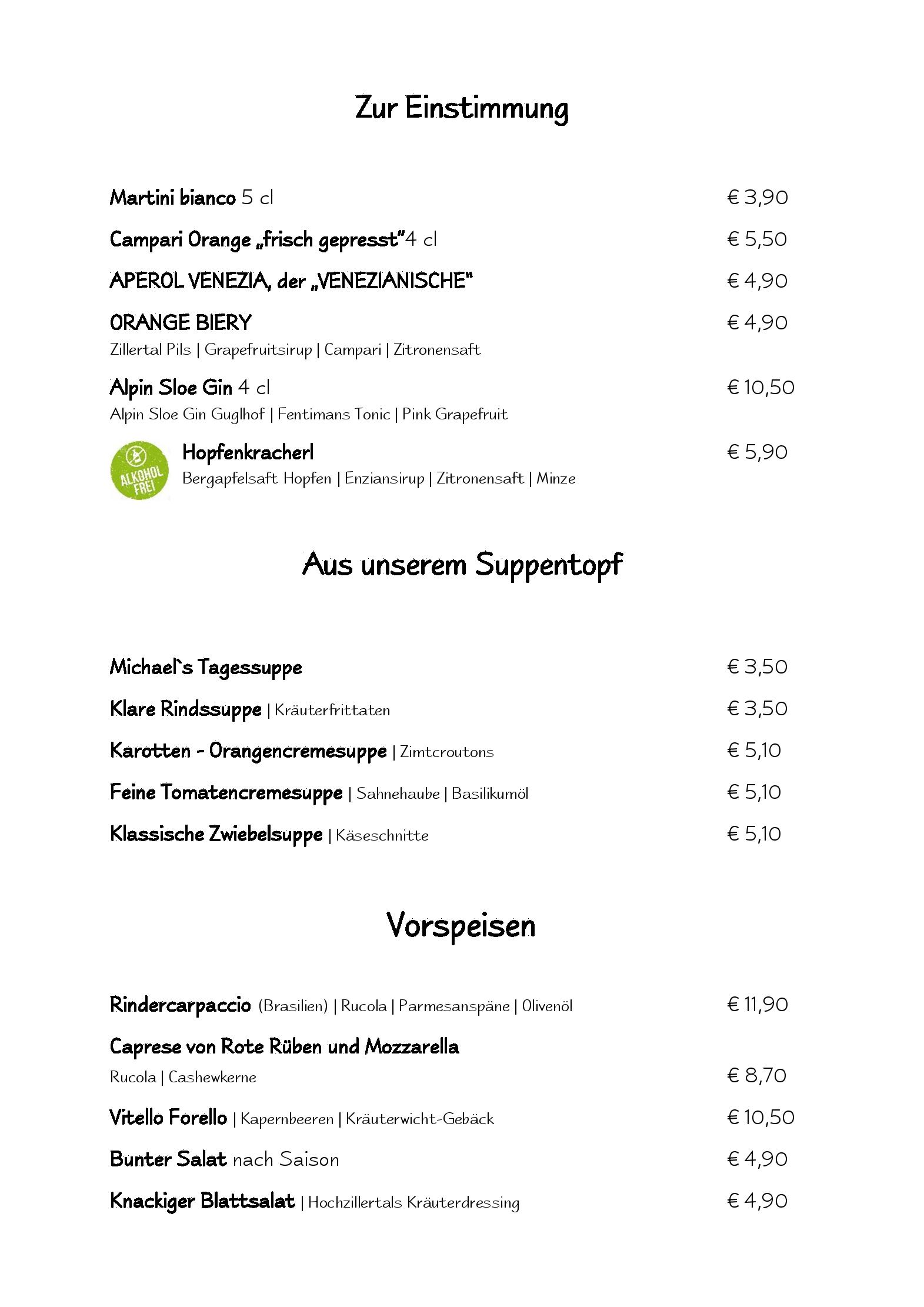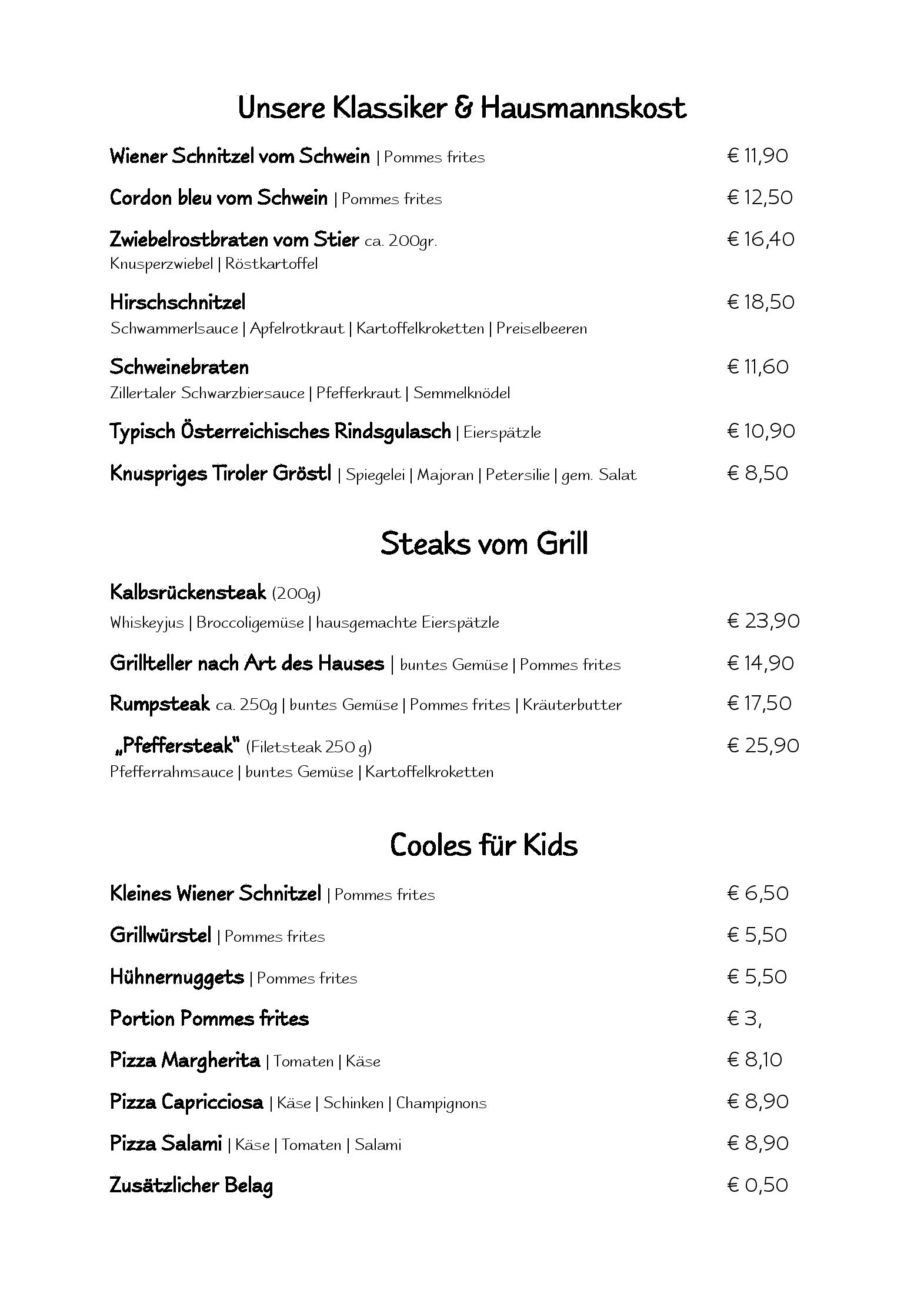 Download der Speisekarte des Restaurant Hotel Hochzillertal in Kaltenbach im PDF-Format