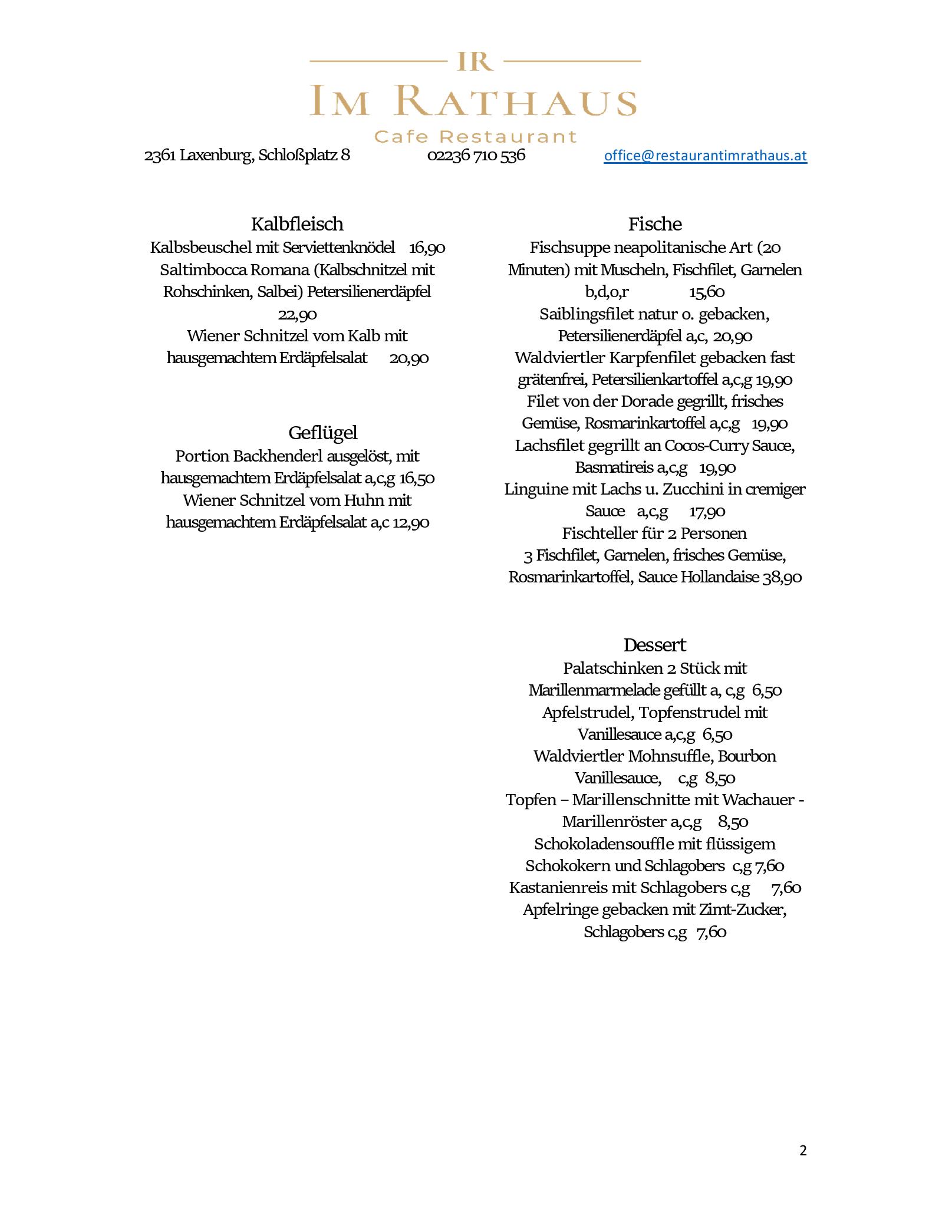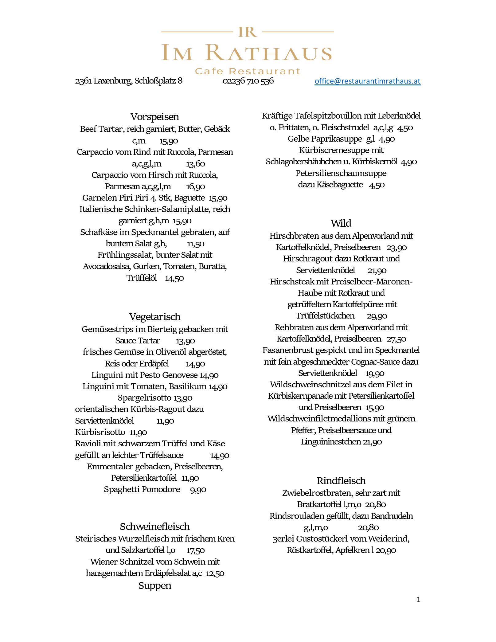 Download der Speisekarte des Cafe Restaurant im Rathaus in Laxenburg im PDF-Format