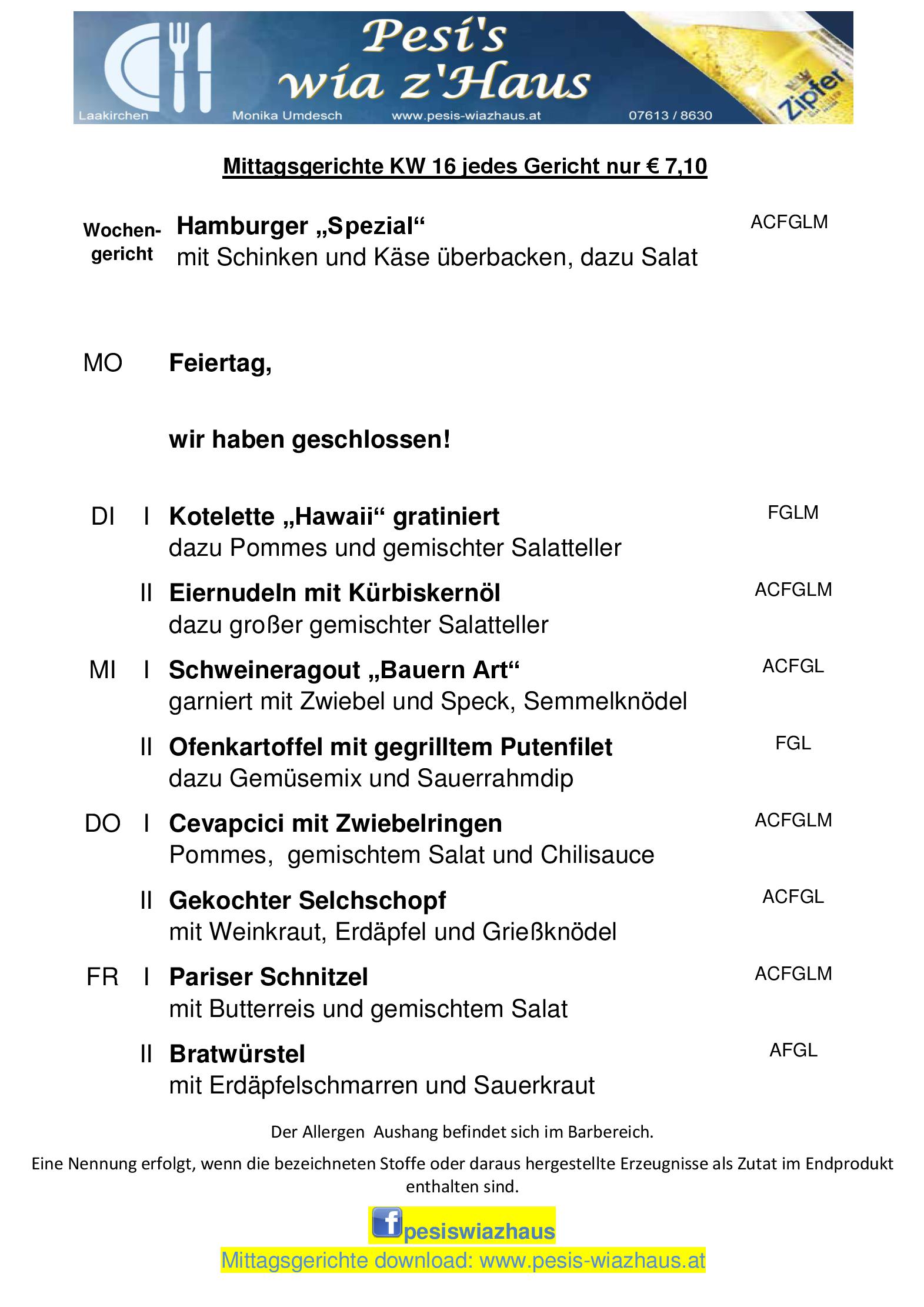 Download der Speisekarte des Restaurant Pesis wia zapos Haus in Laakirchen im PDF-Format