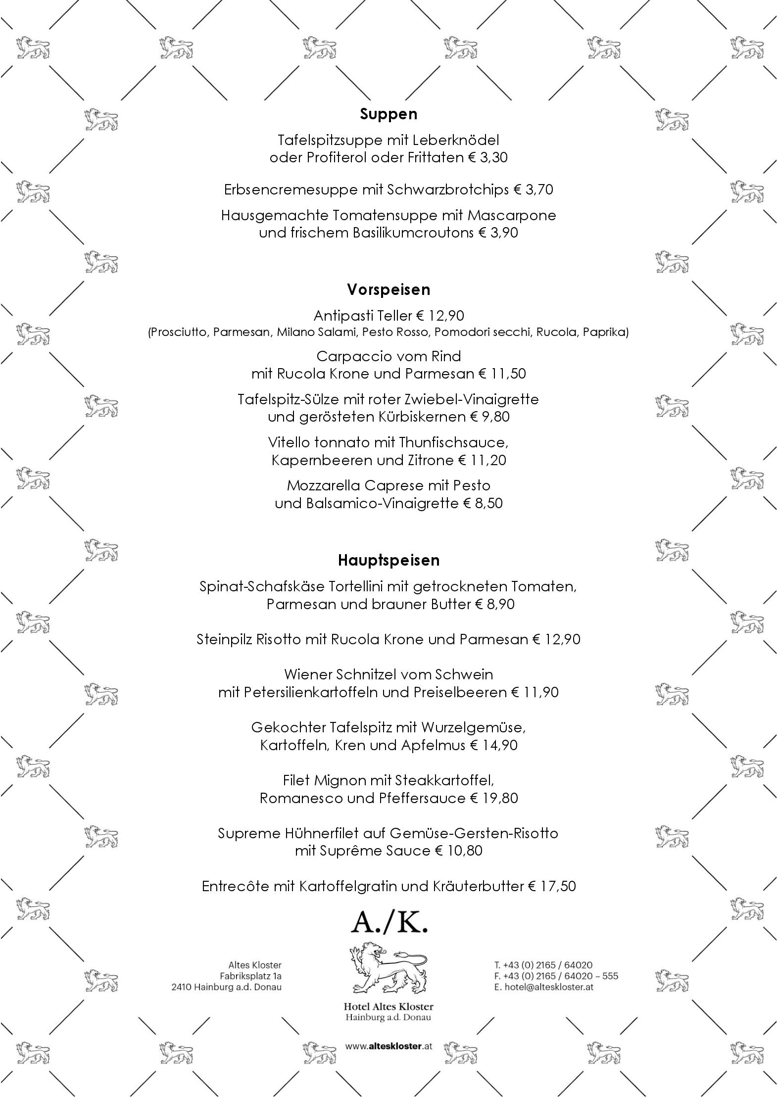 Download der Speisekarte des Restaurant Minori in Hainburg an der im PDF-Format