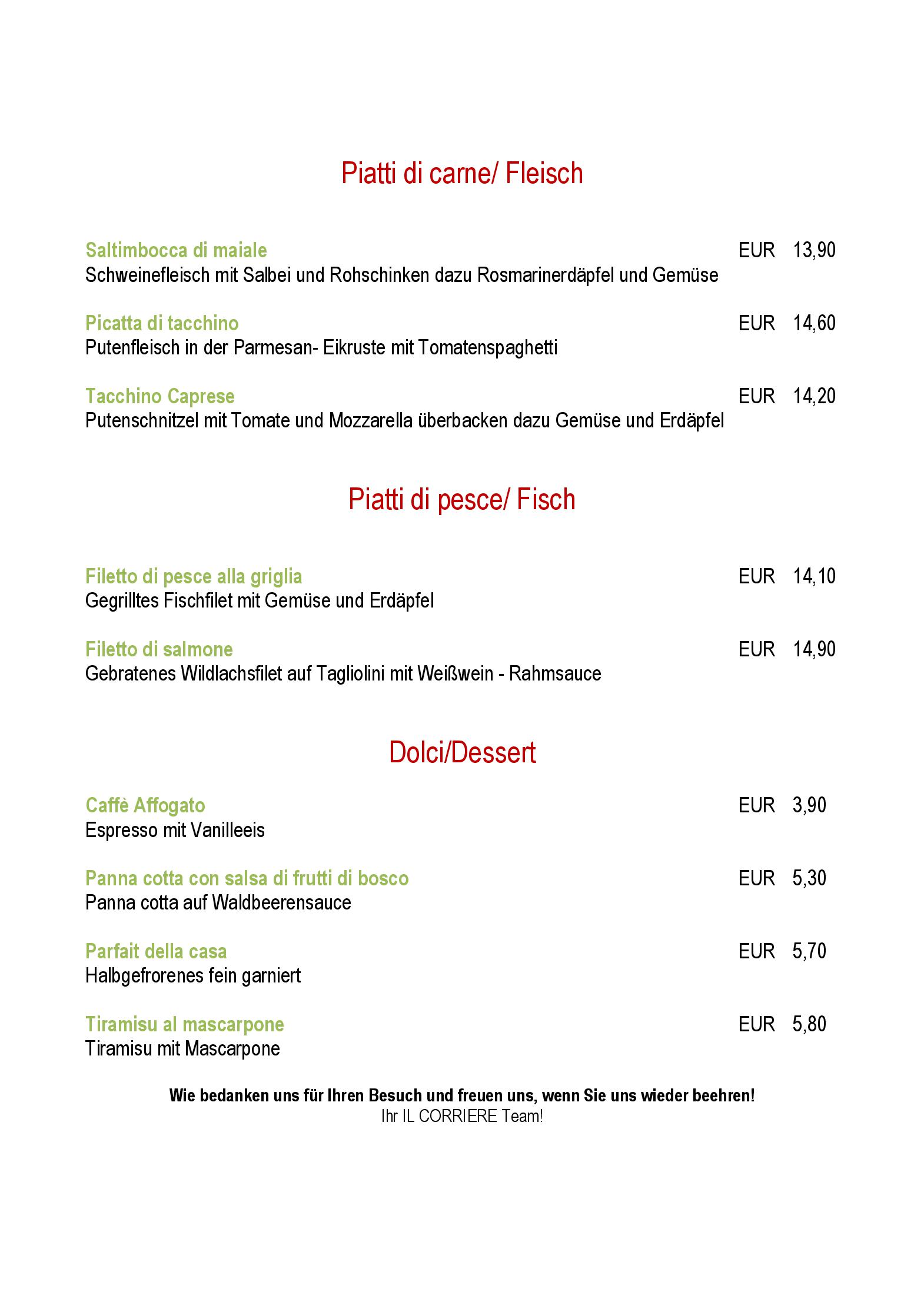 Download der Speisekarte des Restaurant Trattoria Il Corriere in Spital am Pyhrn im PDF-Format