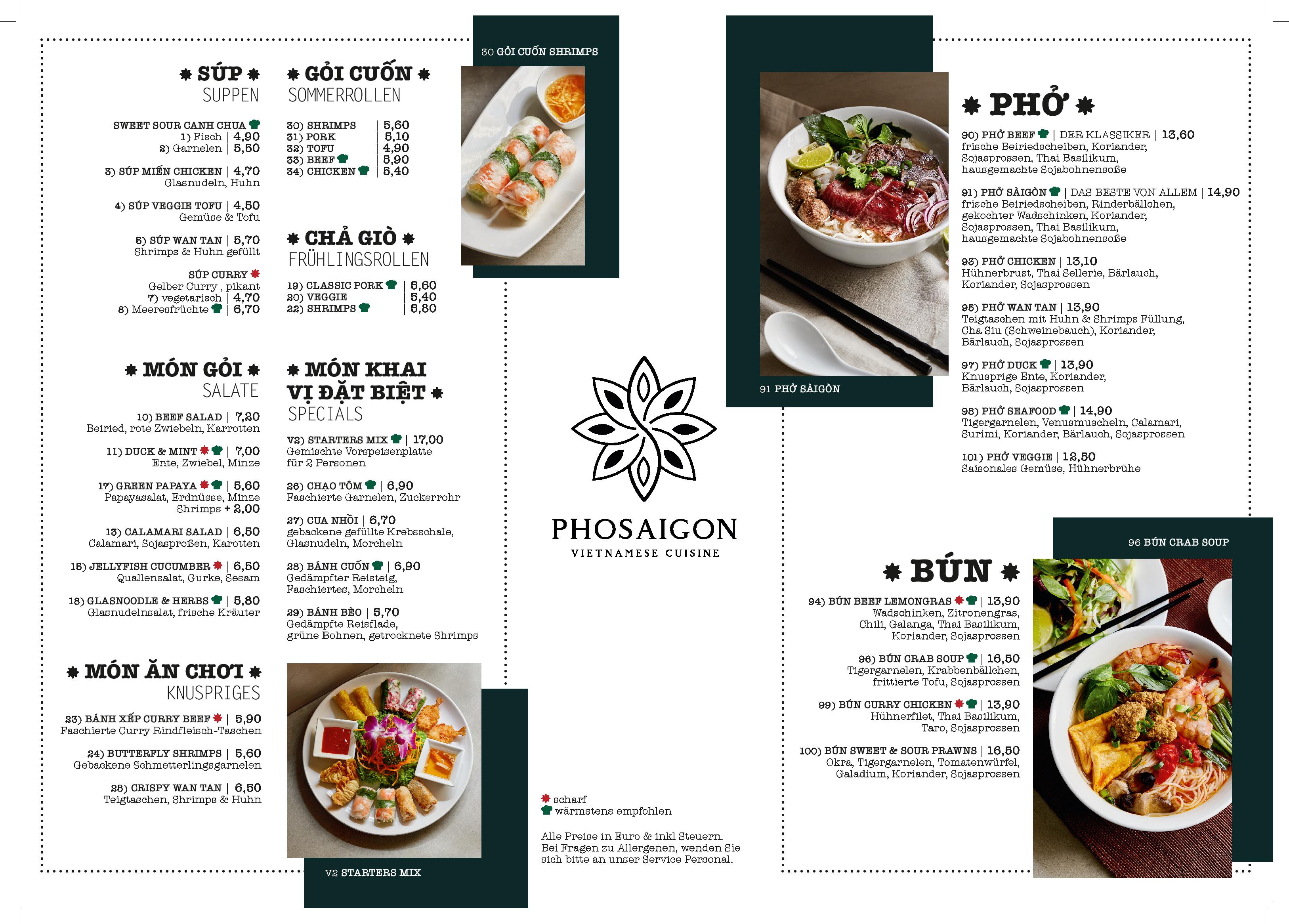 Download der Speisekarte des Restaurant Pho Saigon in Wien im PDF-Format