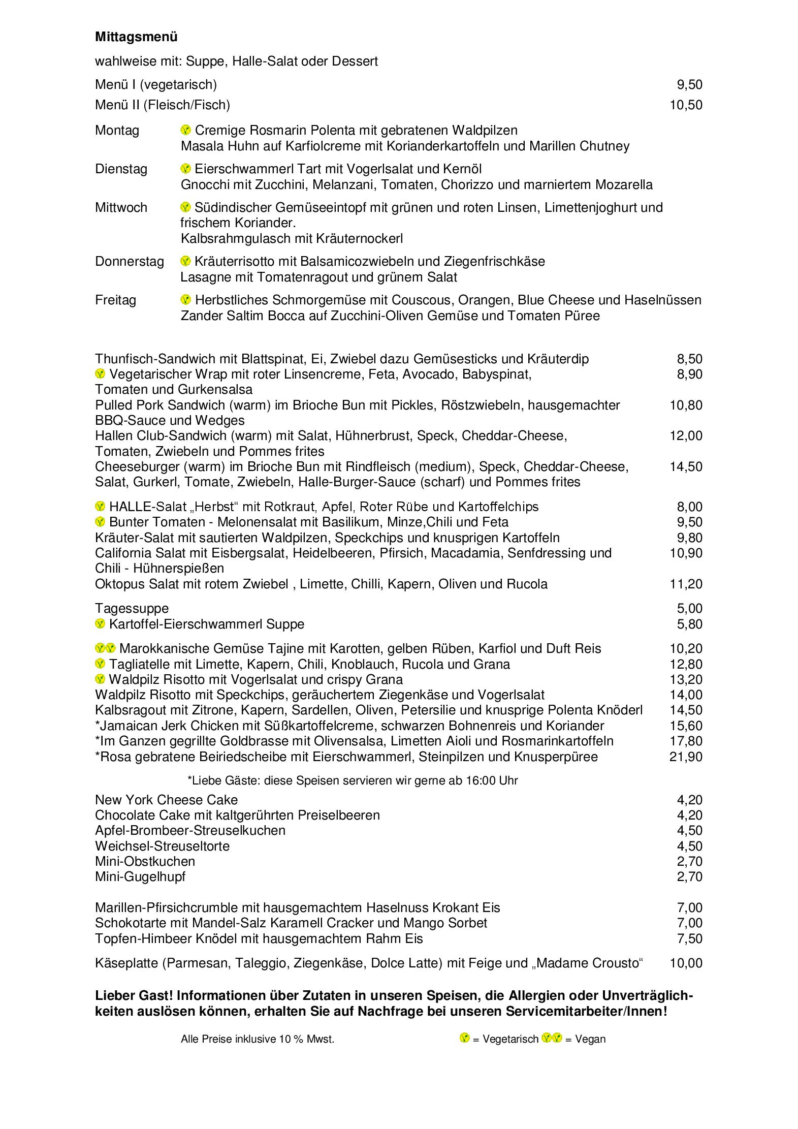 Download der Speisekarte des HALLE Caf Restaurant in Wien im PDF-Format