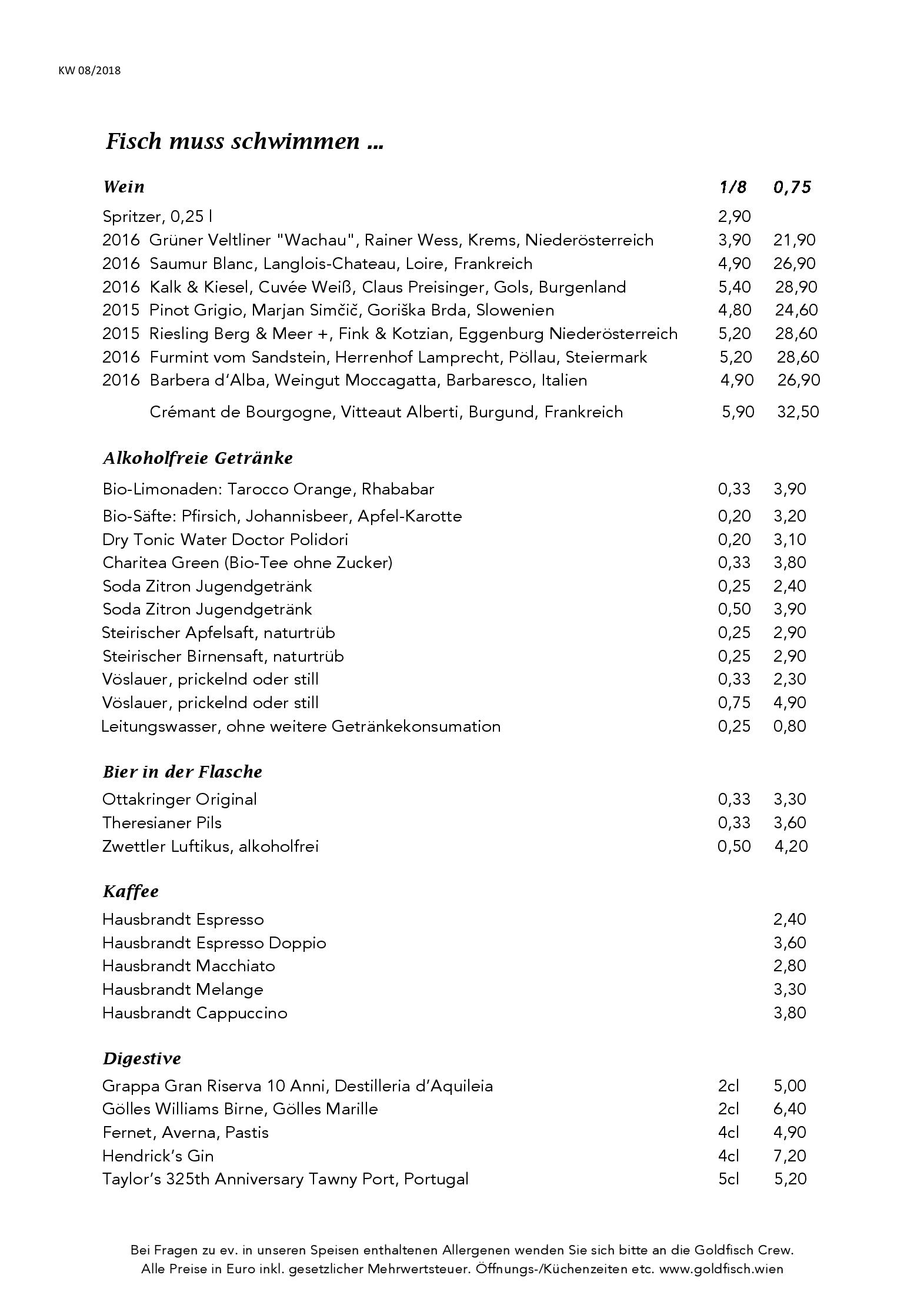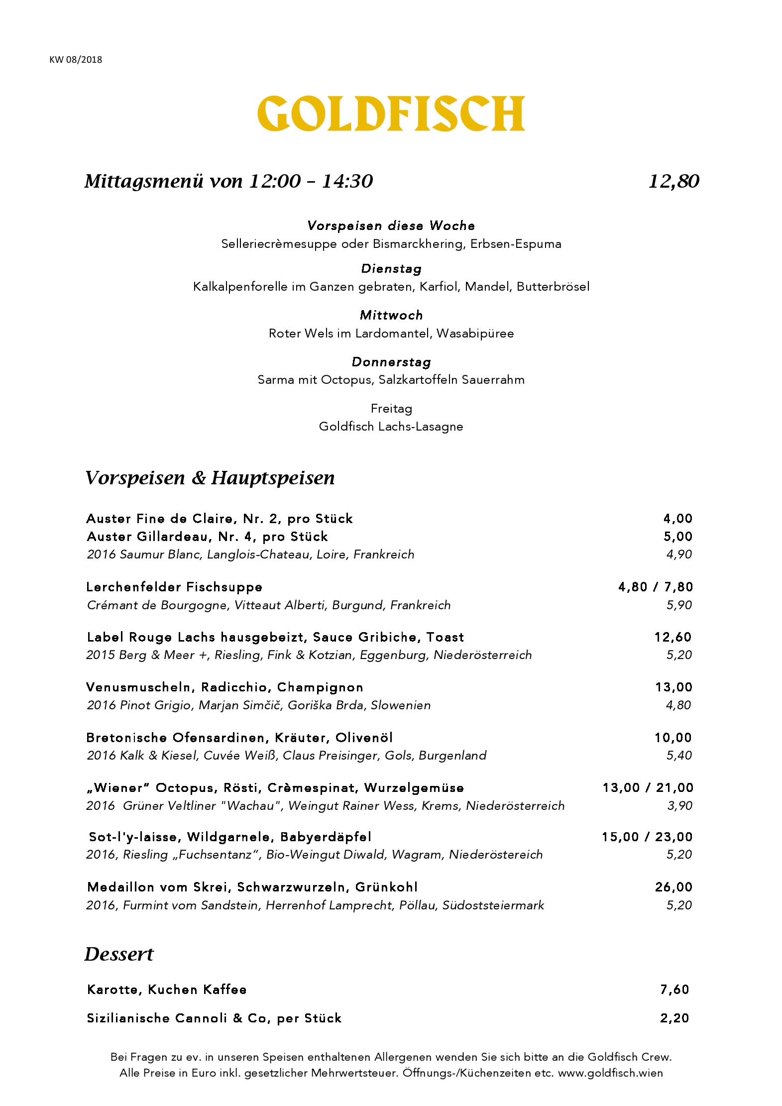 Download der Speisekarte des Restaurant Goldfisch in Wien im PDF-Format