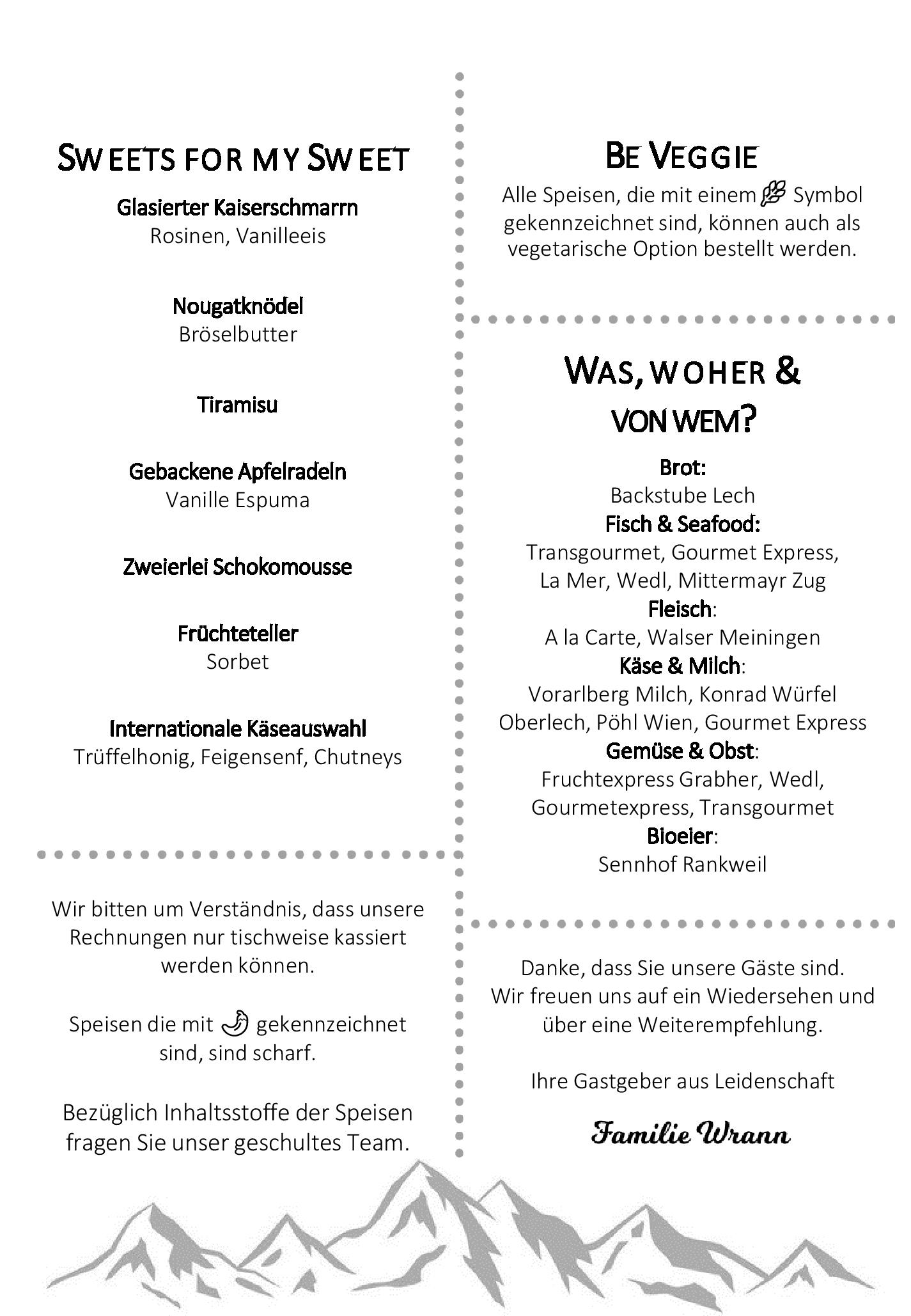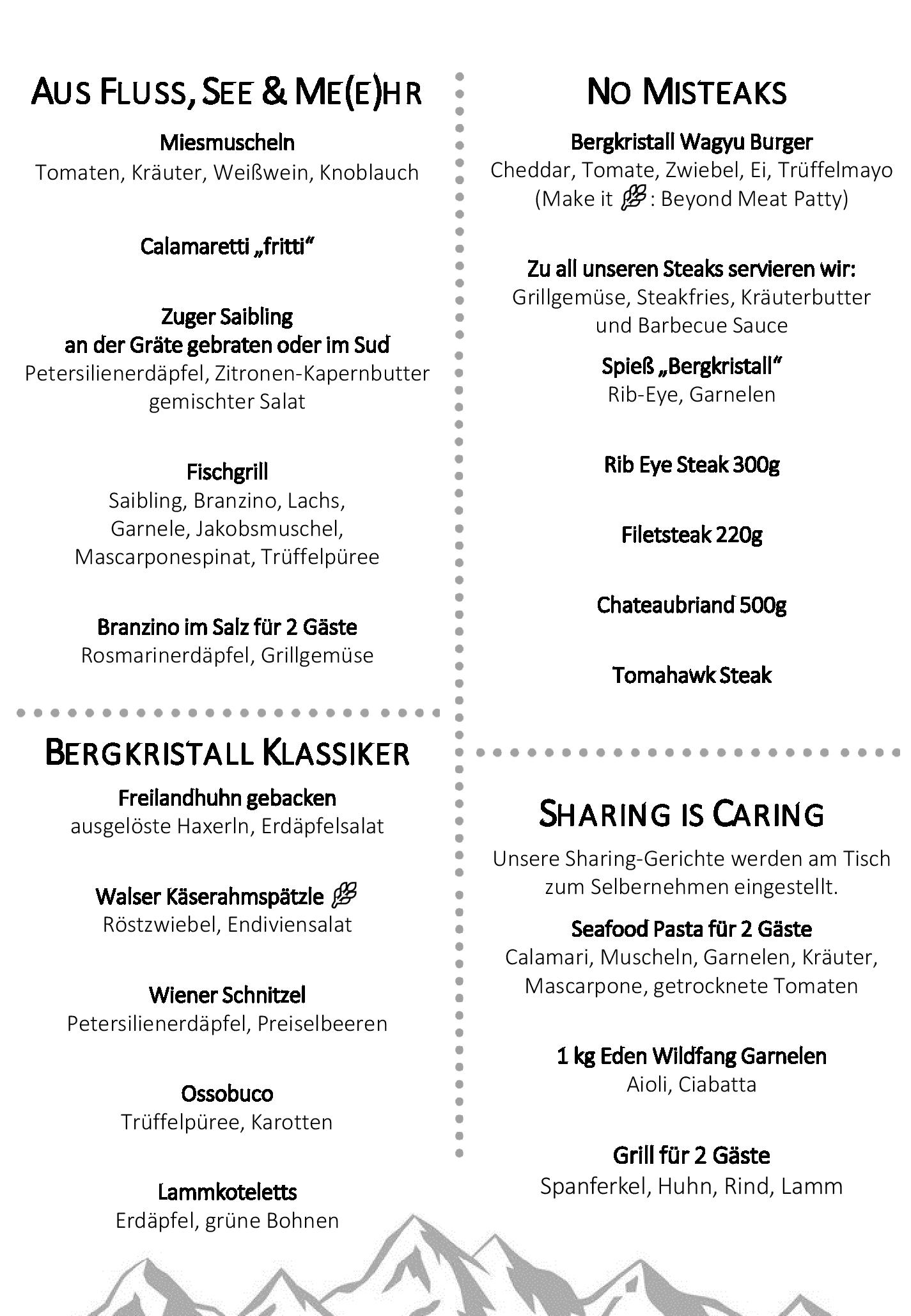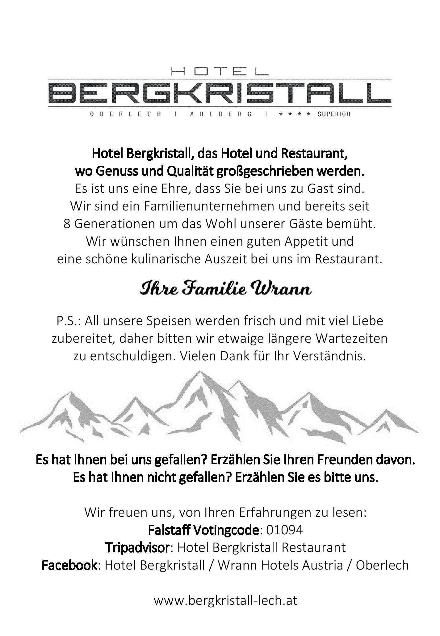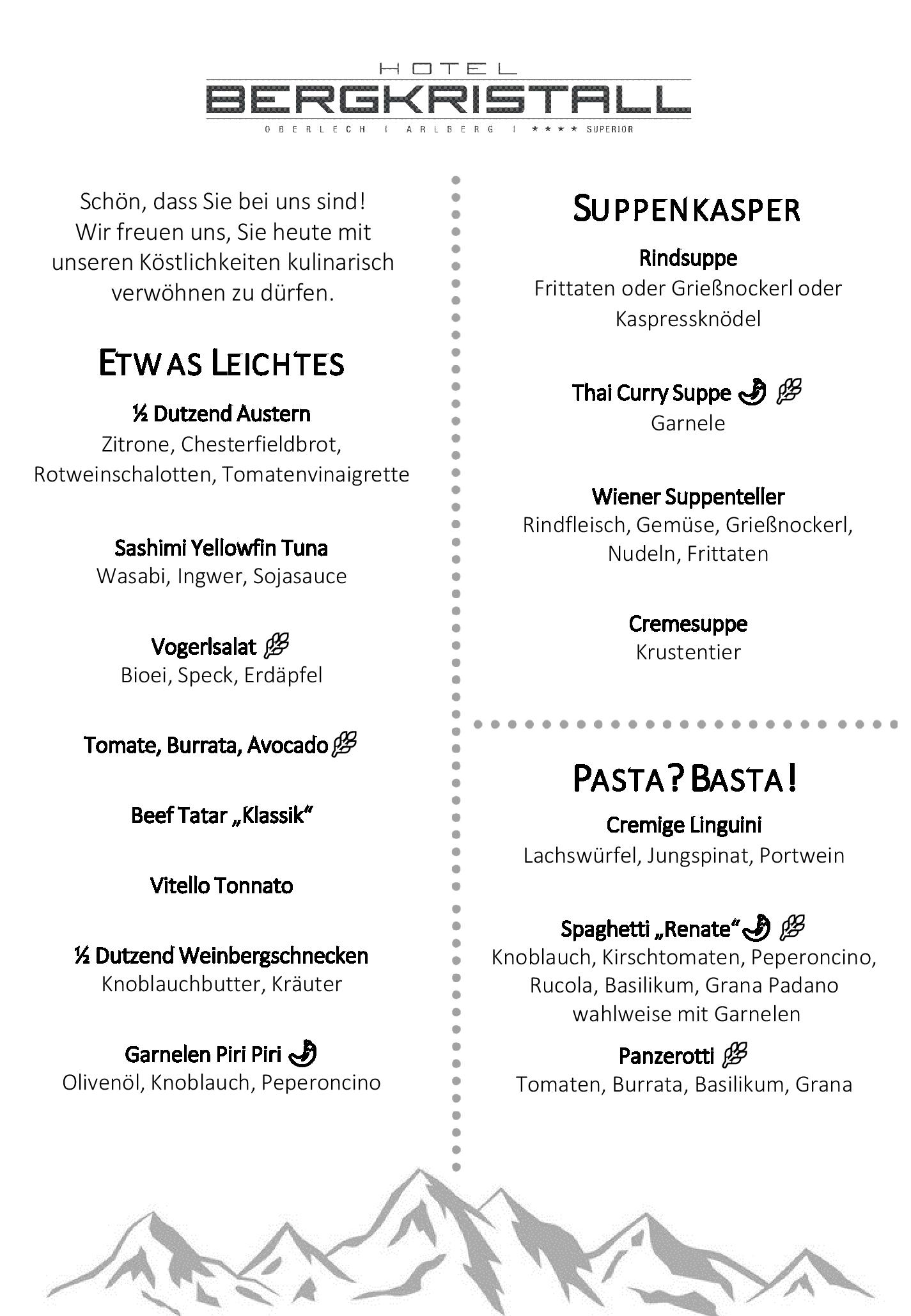 Download der Speisekarte des Restaurant BERGKRISTALL in Lech im PDF-Format