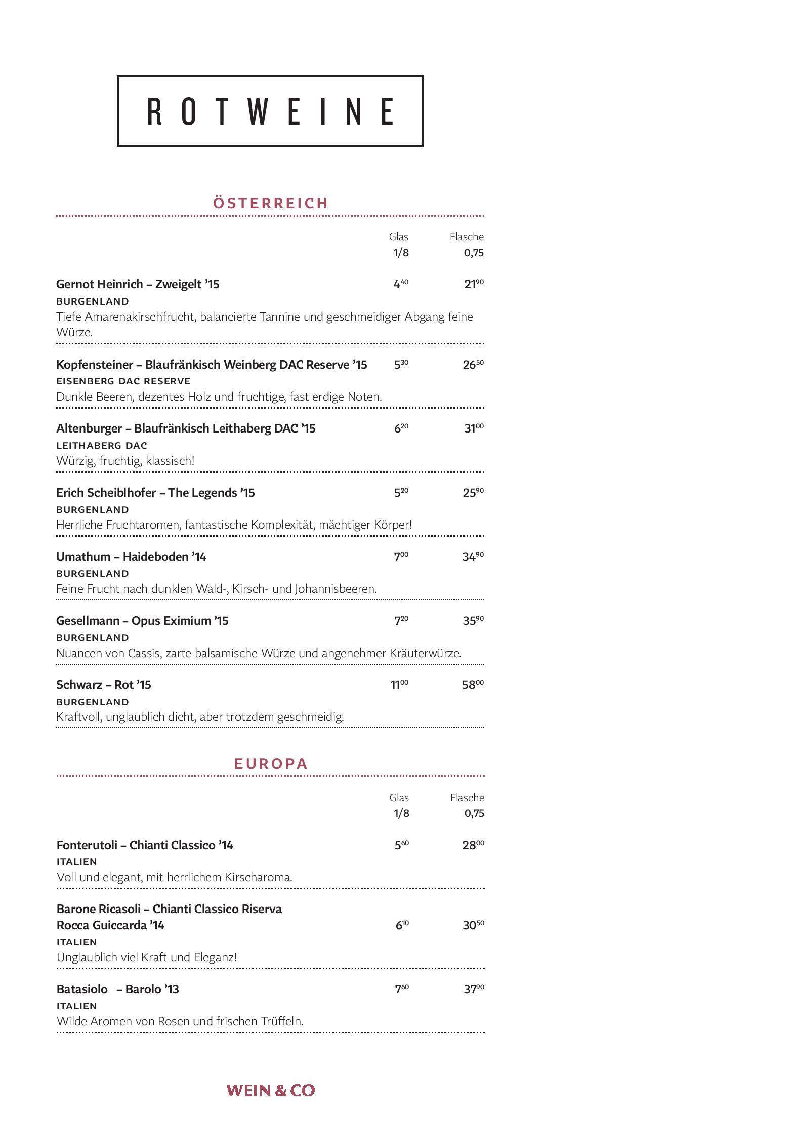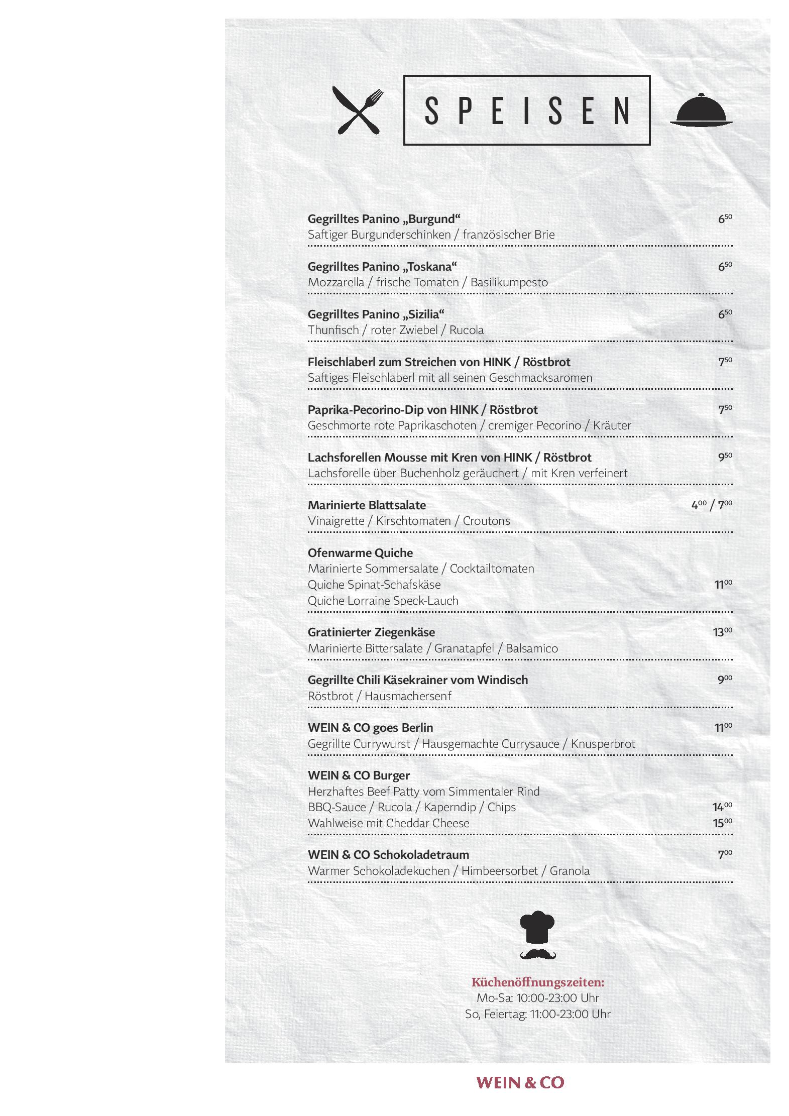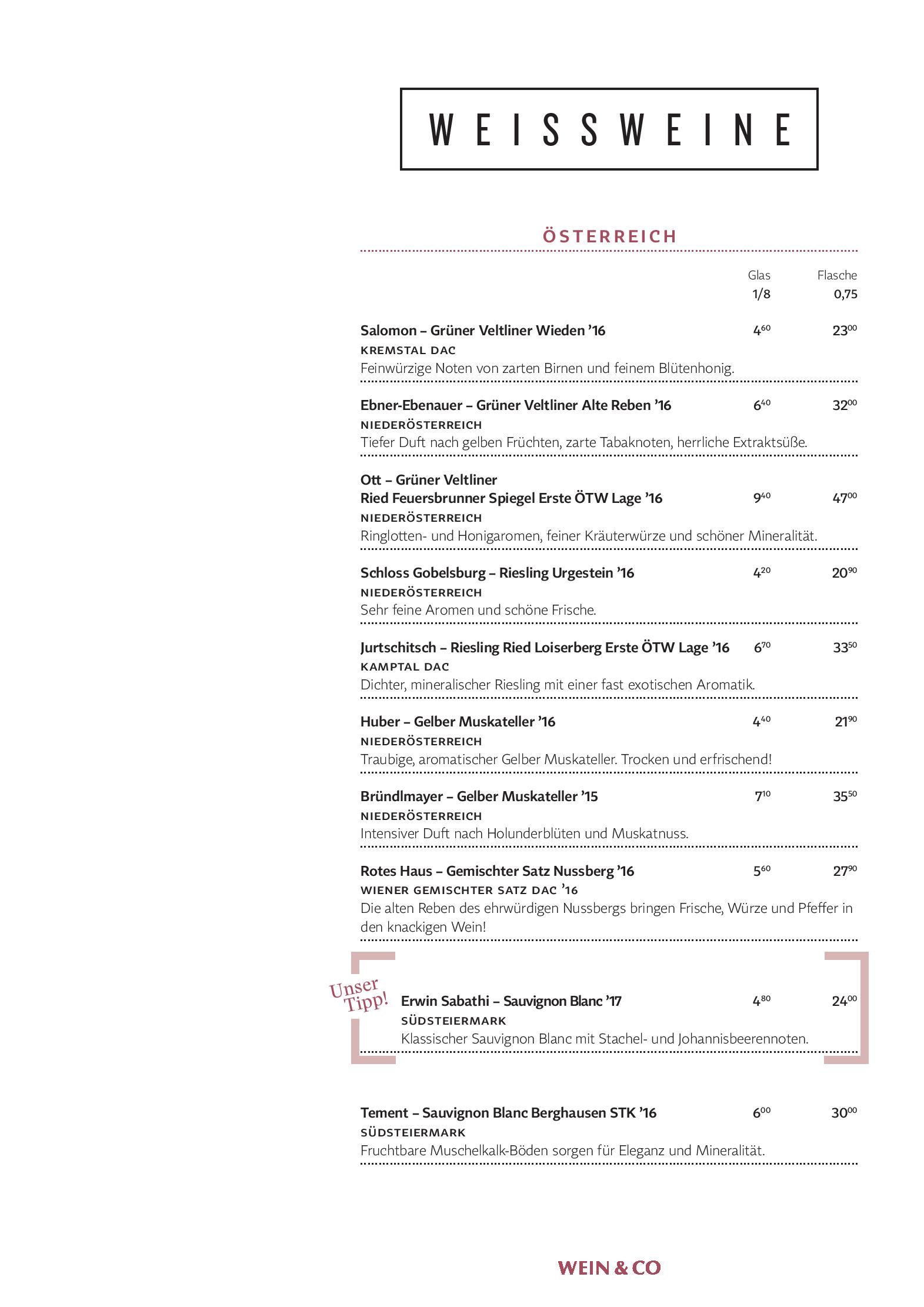 Download der Speisekarte des Restaurant Wein  Co in Wien im PDF-Format
