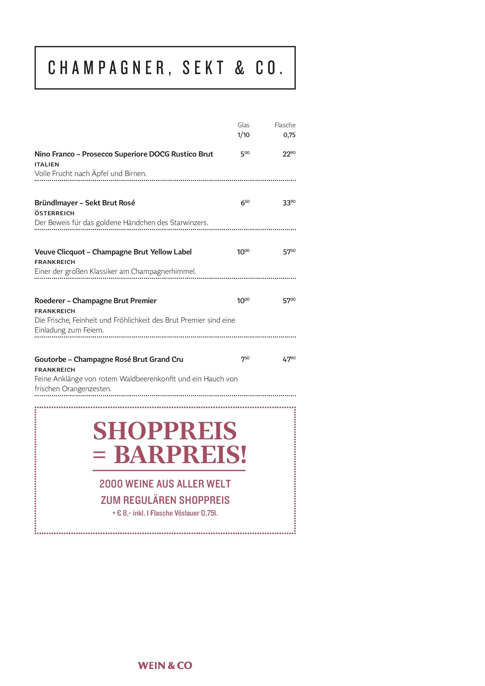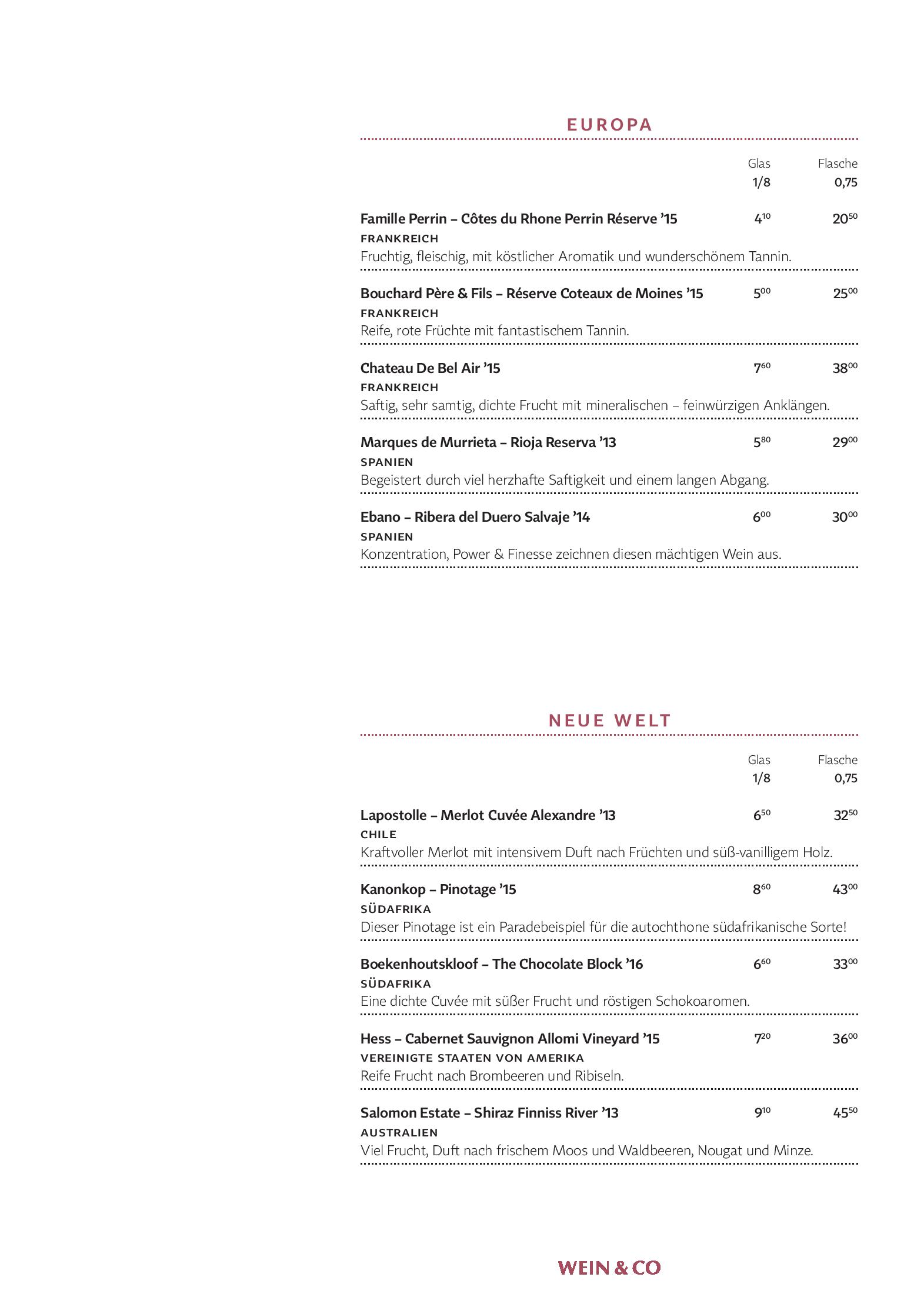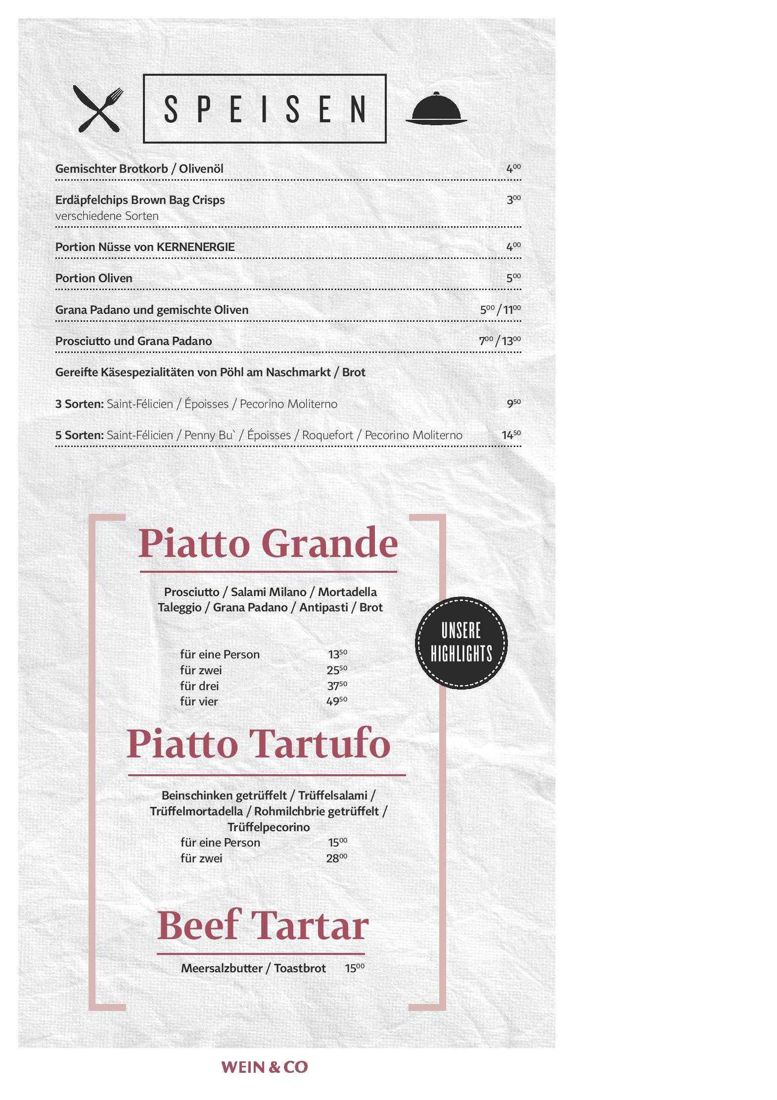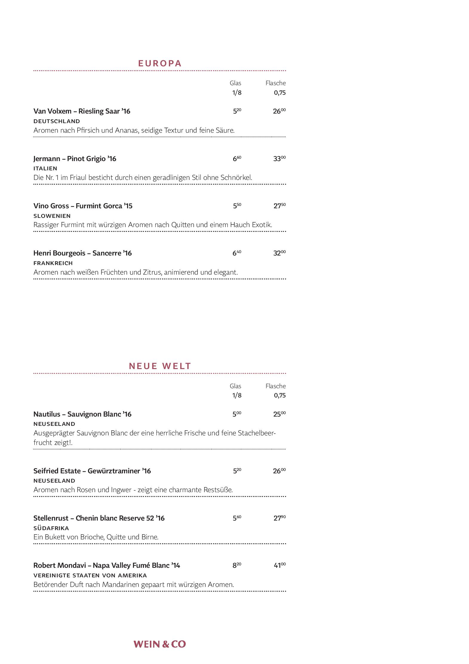 Download der Speisekarte des Restaurant Wein  Co in Wien im PDF-Format