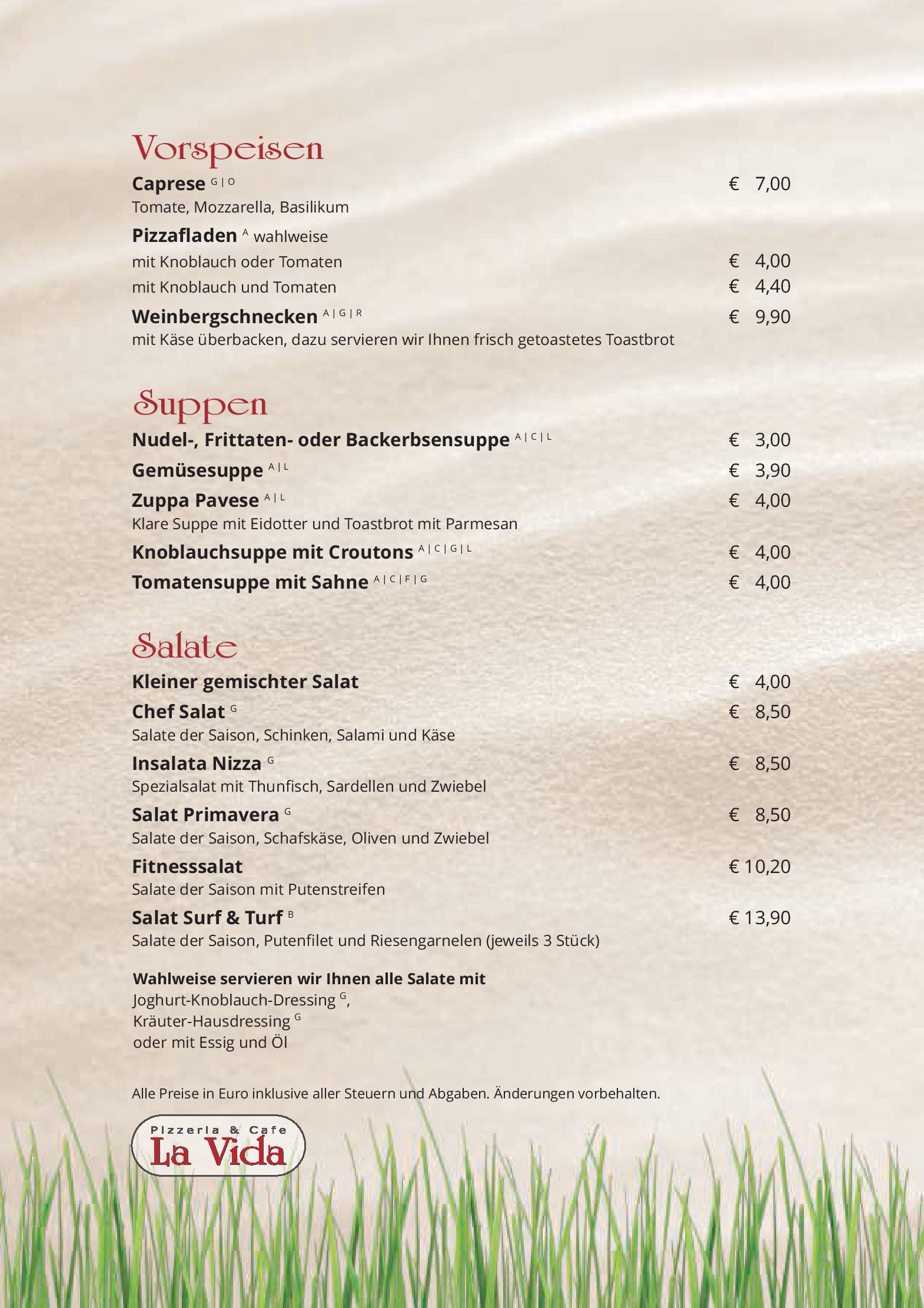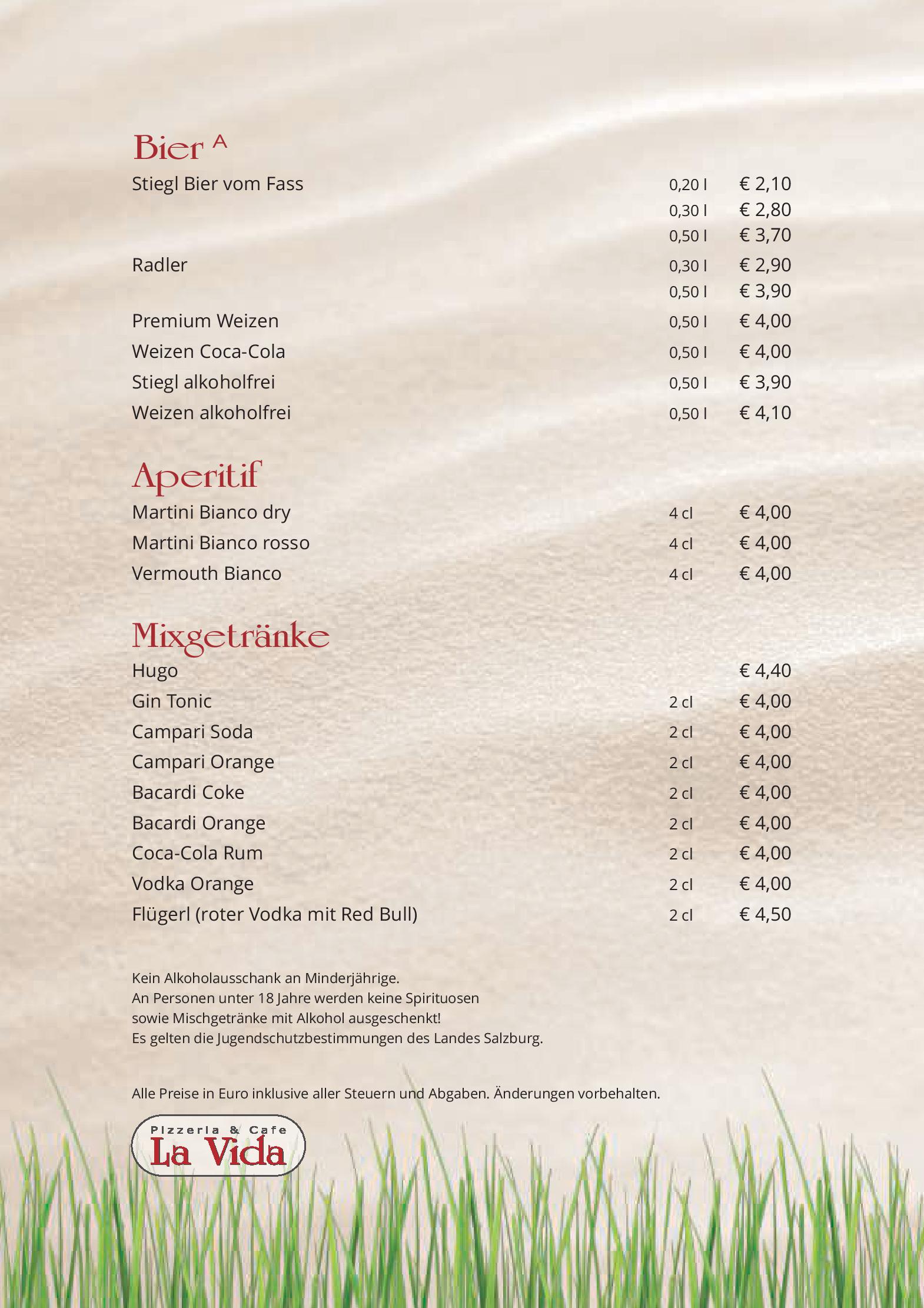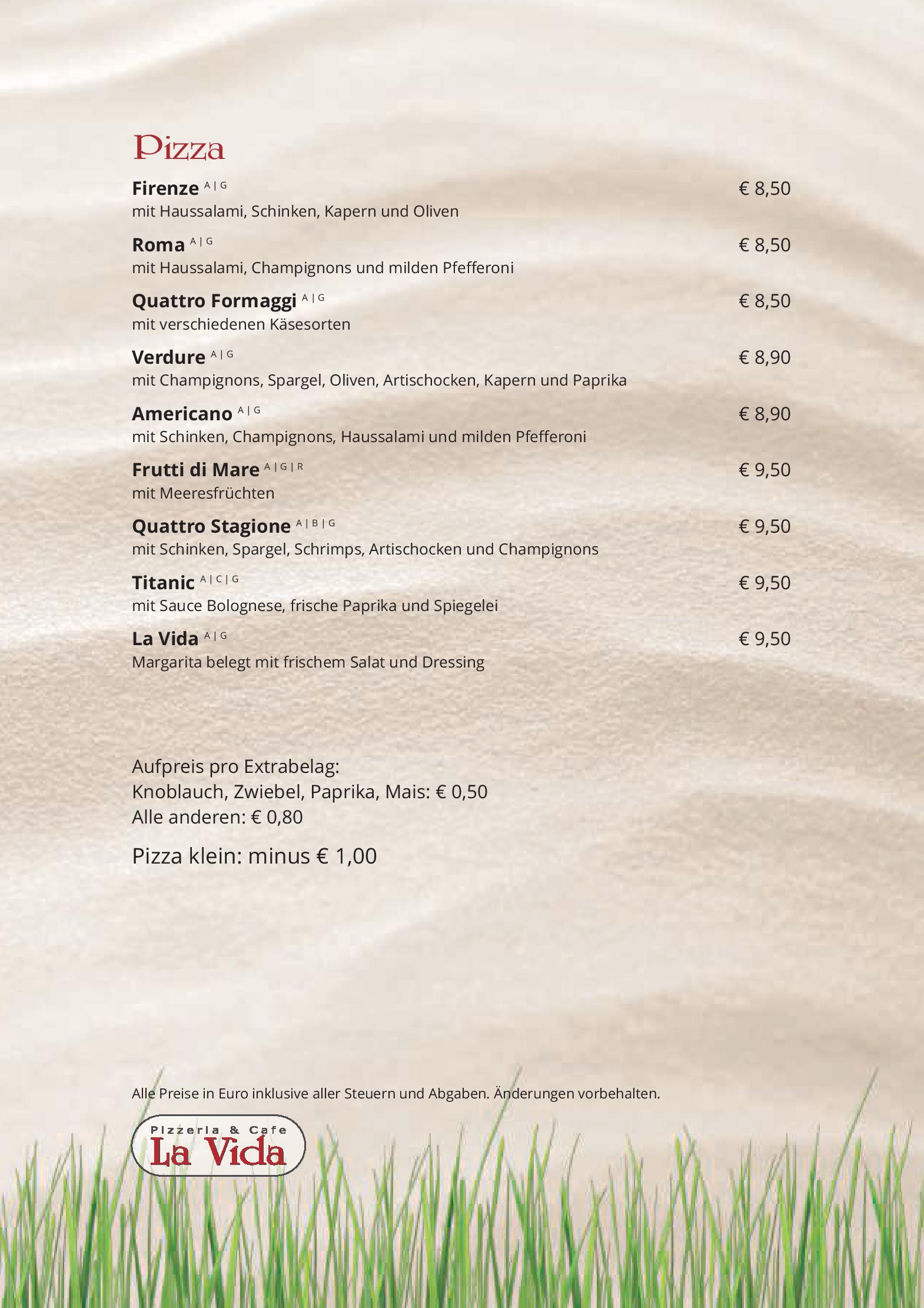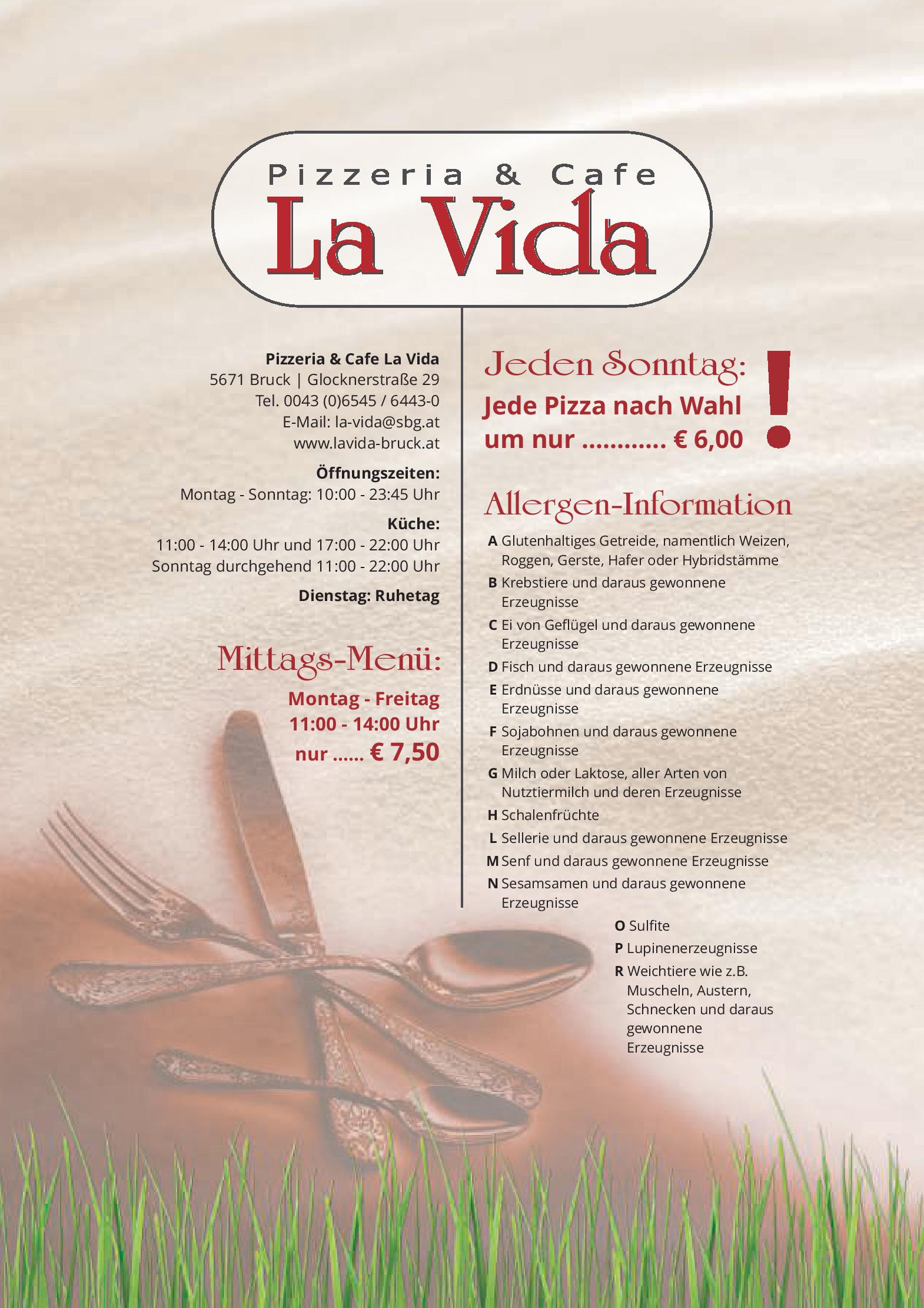 Download der Speisekarte des Restaurant Cafe Pizzeria La Vida in Bruck an der Grossglocknerstrasse im PDF-Format
