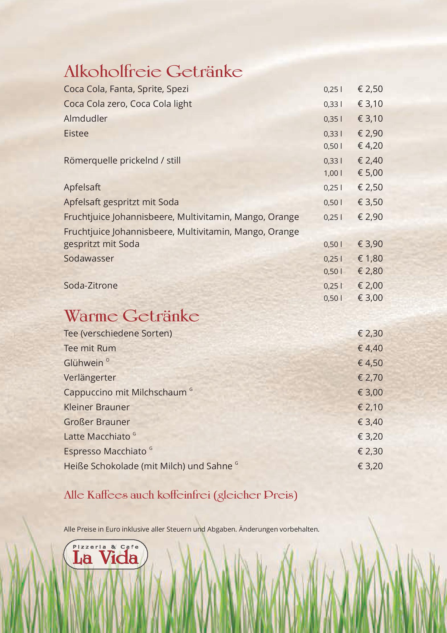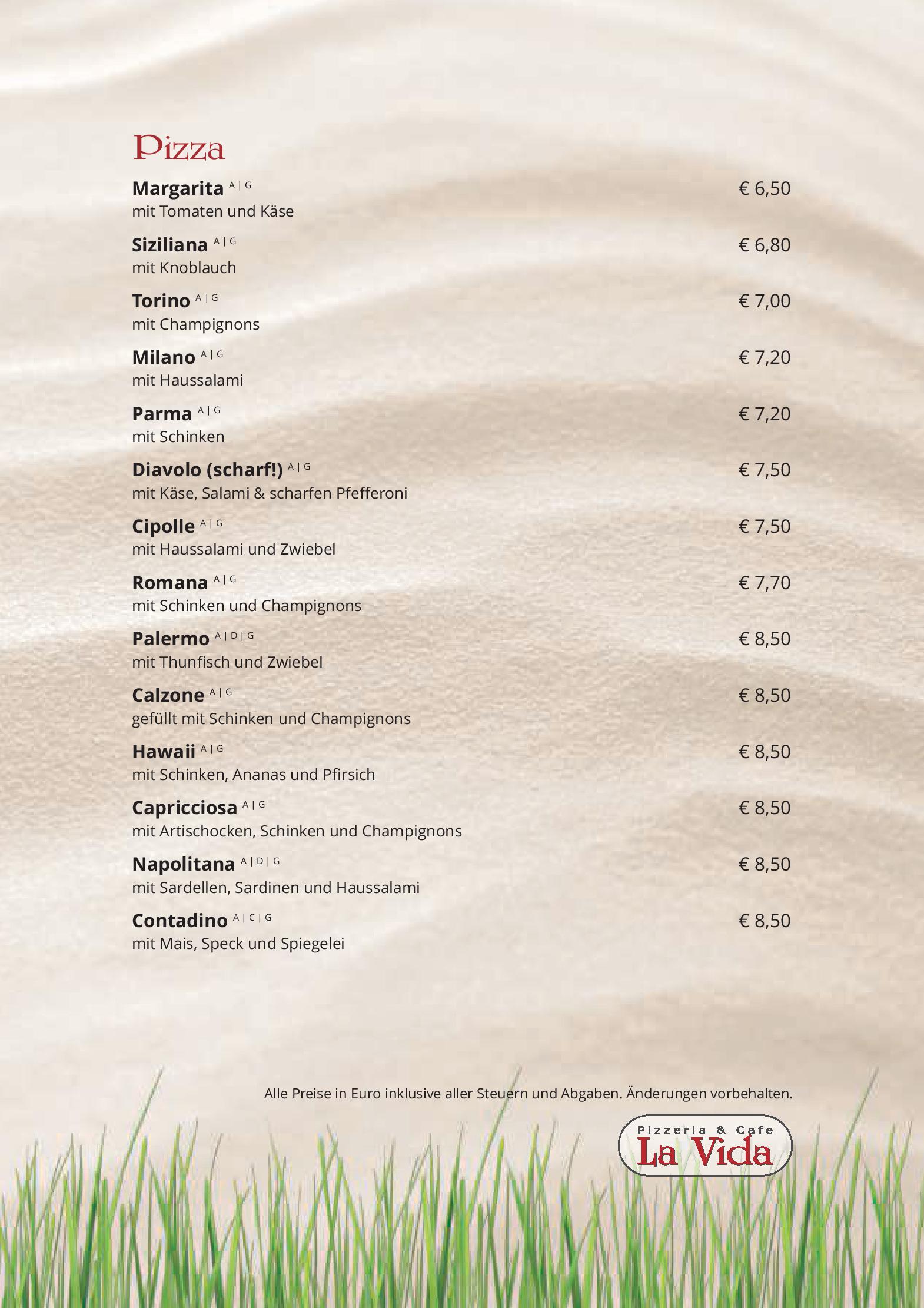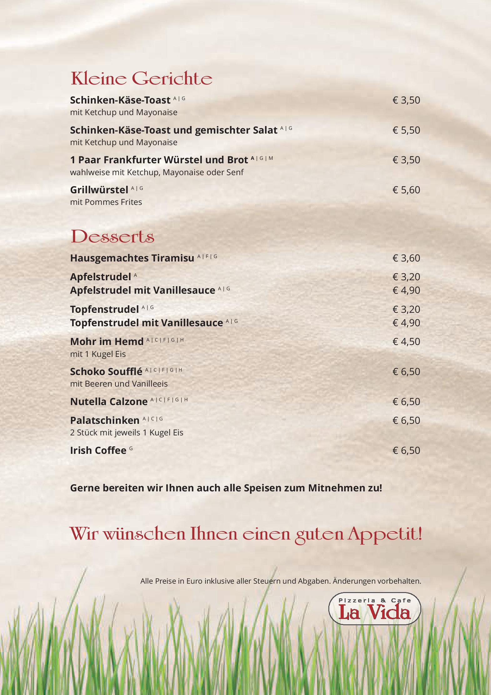 Download der Speisekarte des Restaurant Cafe Pizzeria La Vida in Bruck an der Grossglocknerstrasse im PDF-Format