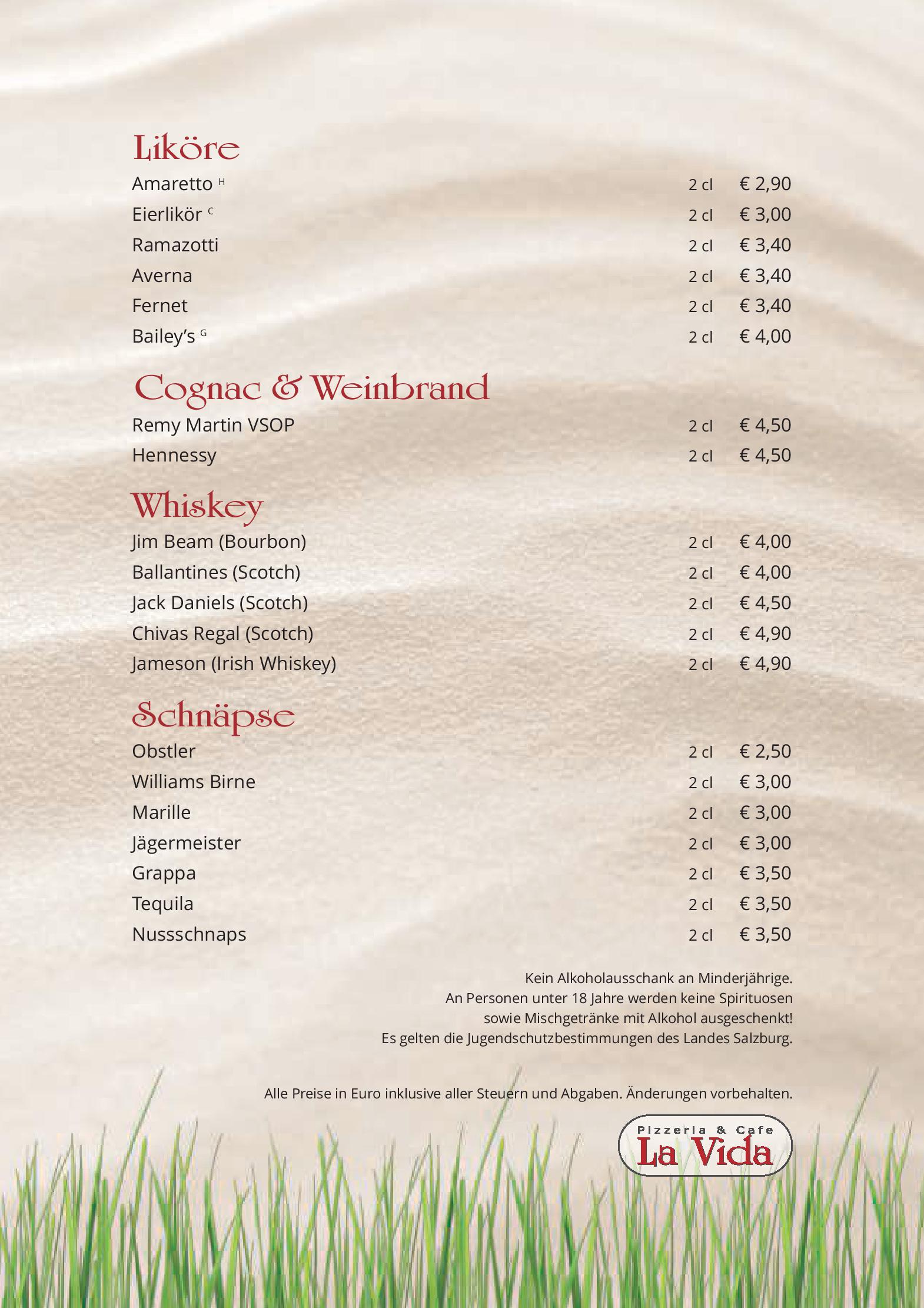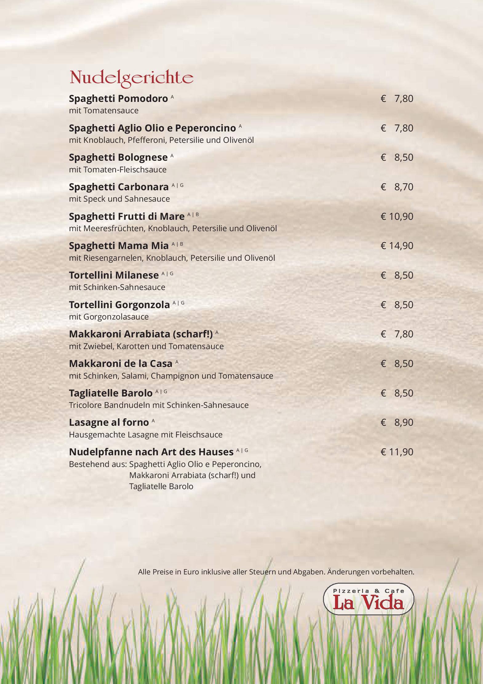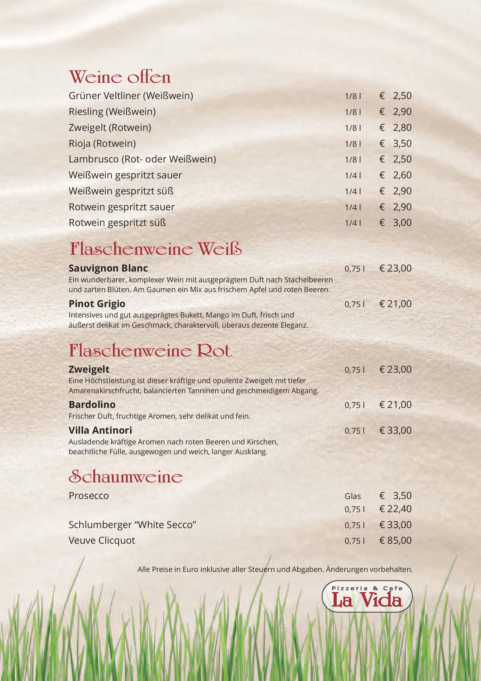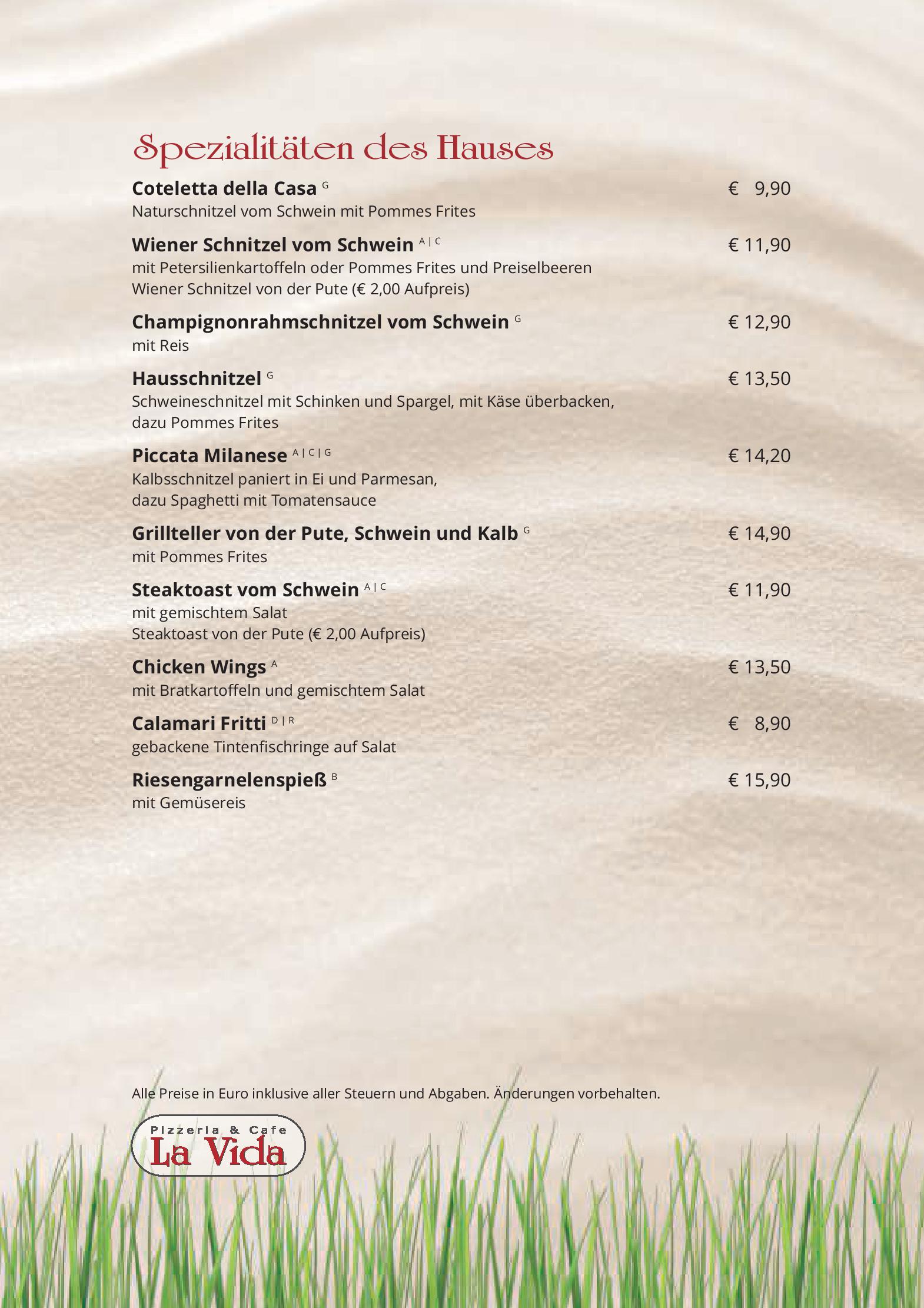 Download der Speisekarte des Restaurant Cafe Pizzeria La Vida in Bruck an der Grossglocknerstrasse im PDF-Format
