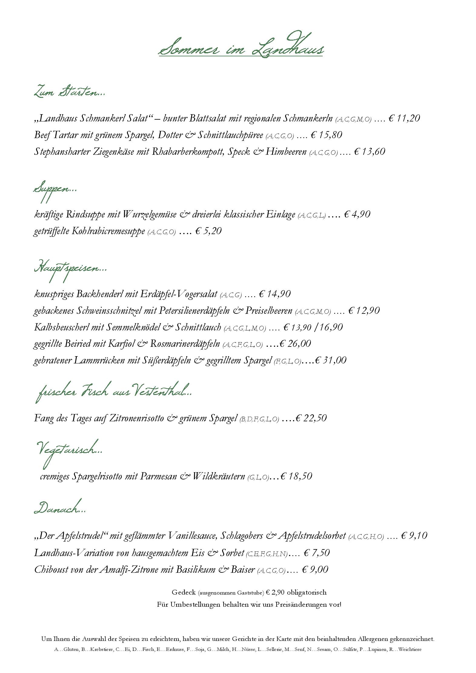 Download der Speisekarte des Restaurant Landhaus Stift Ardagger in Ardagger Stift im PDF-Format