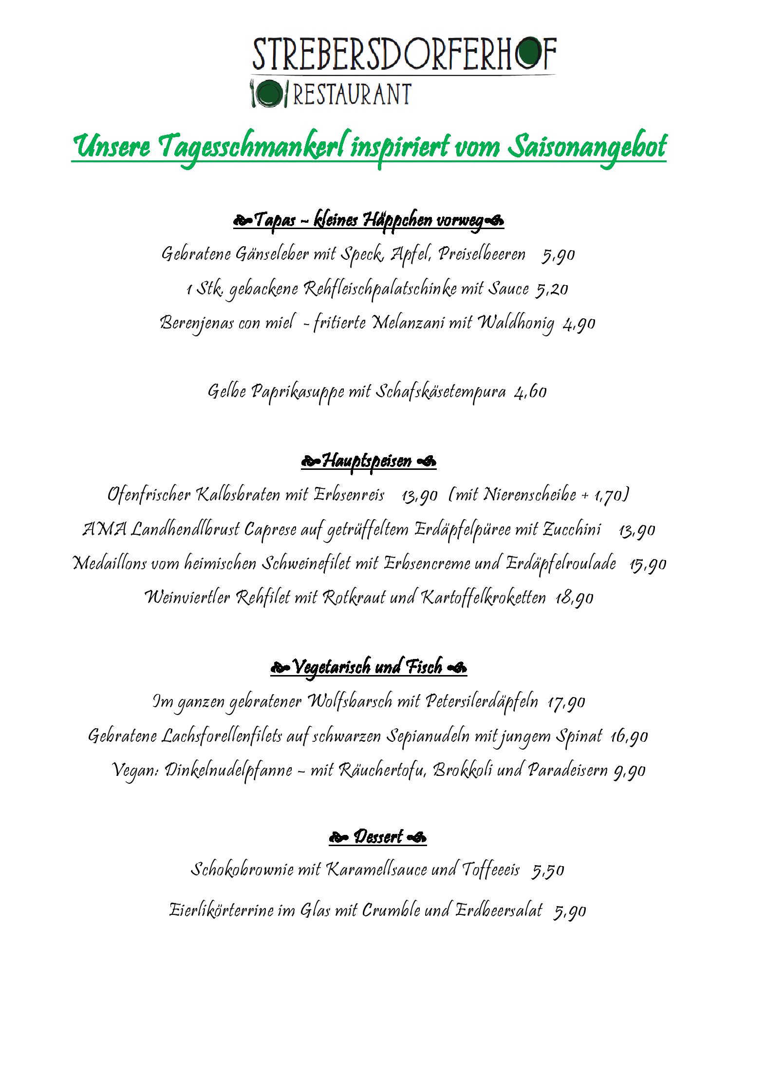 Download der Speisekarte des Restaurant Strebersdorferhof in Wien  im PDF-Format