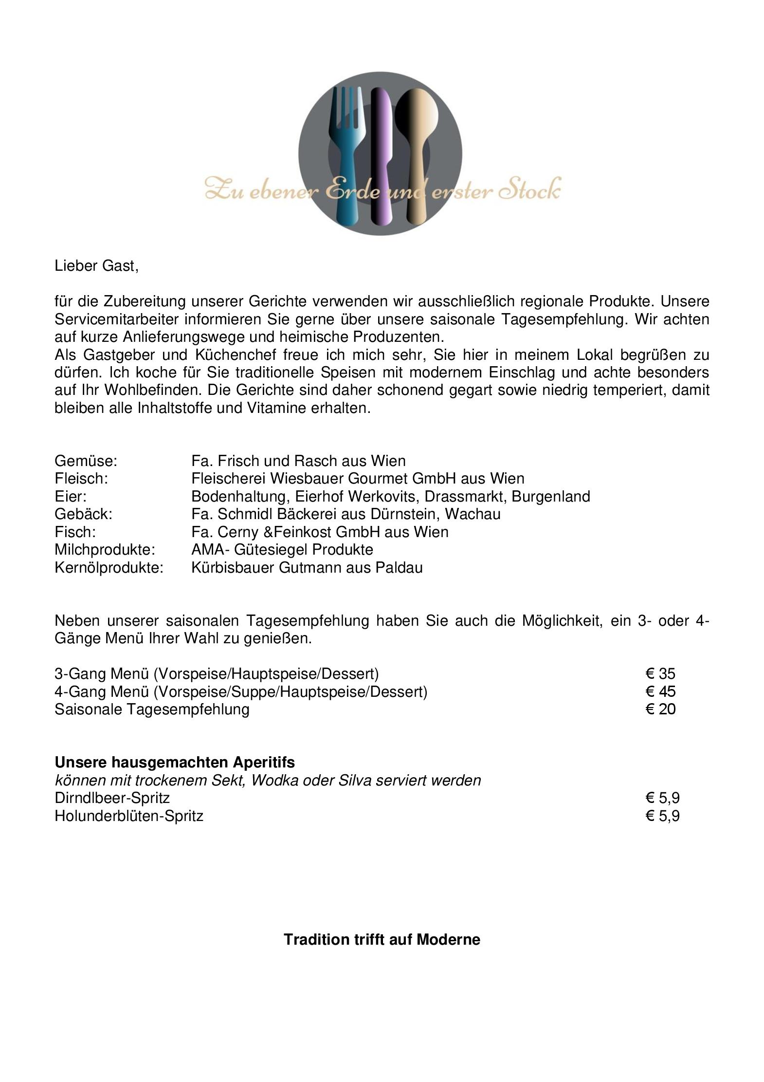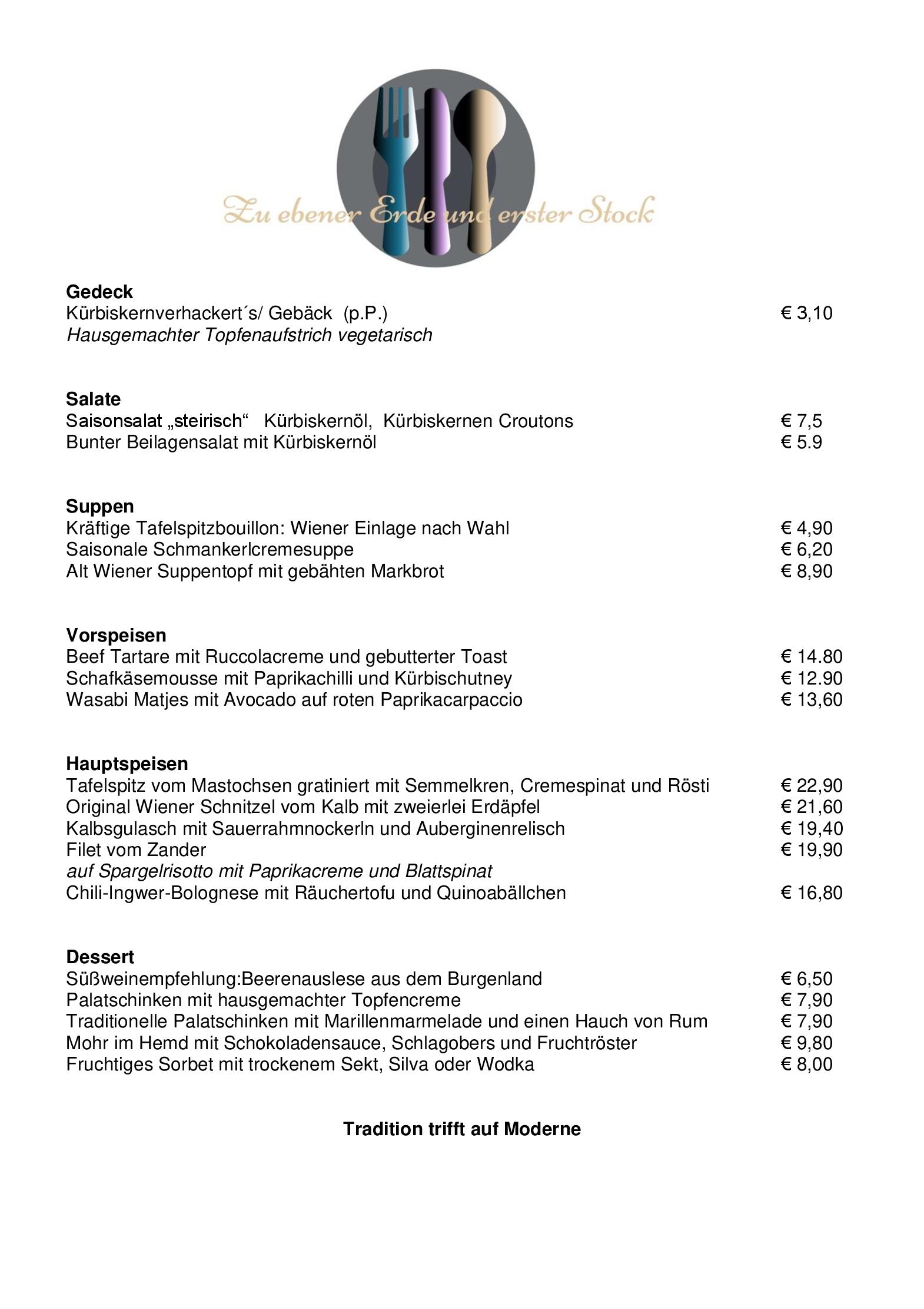 Download der Speisekarte des Das Biedermeierrestaurant Zu ebener Erde und erster Stock in Wien im PDF-Format