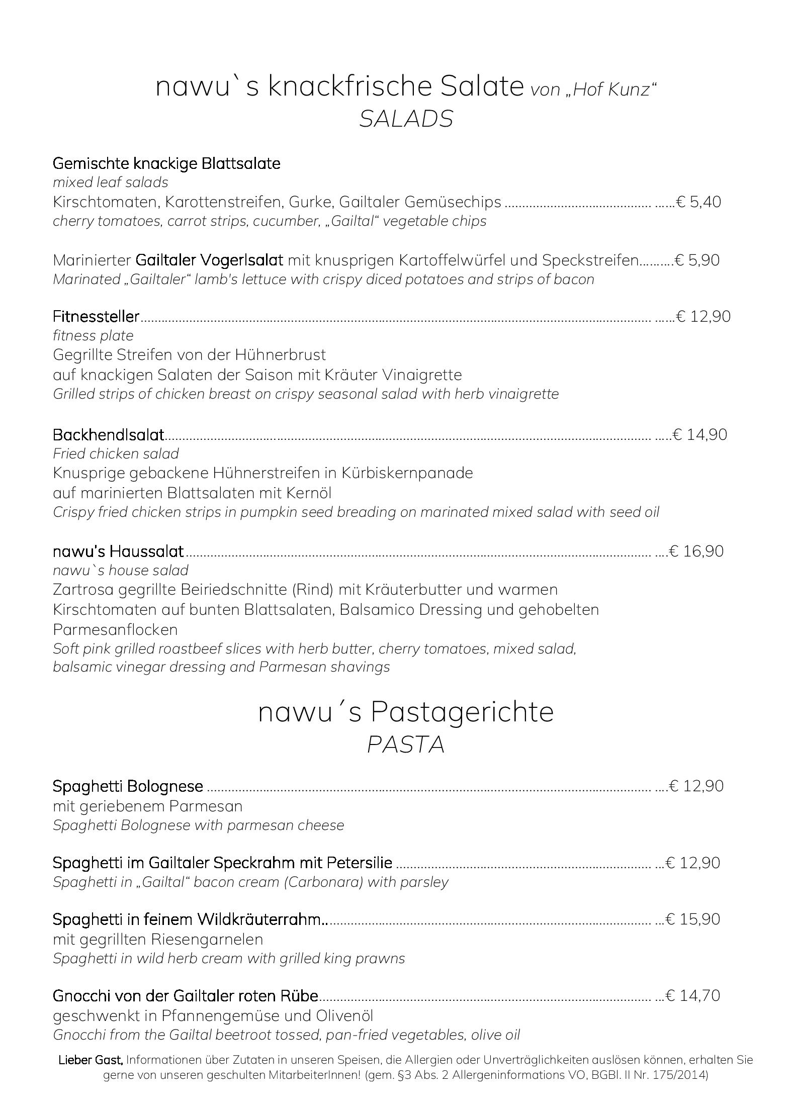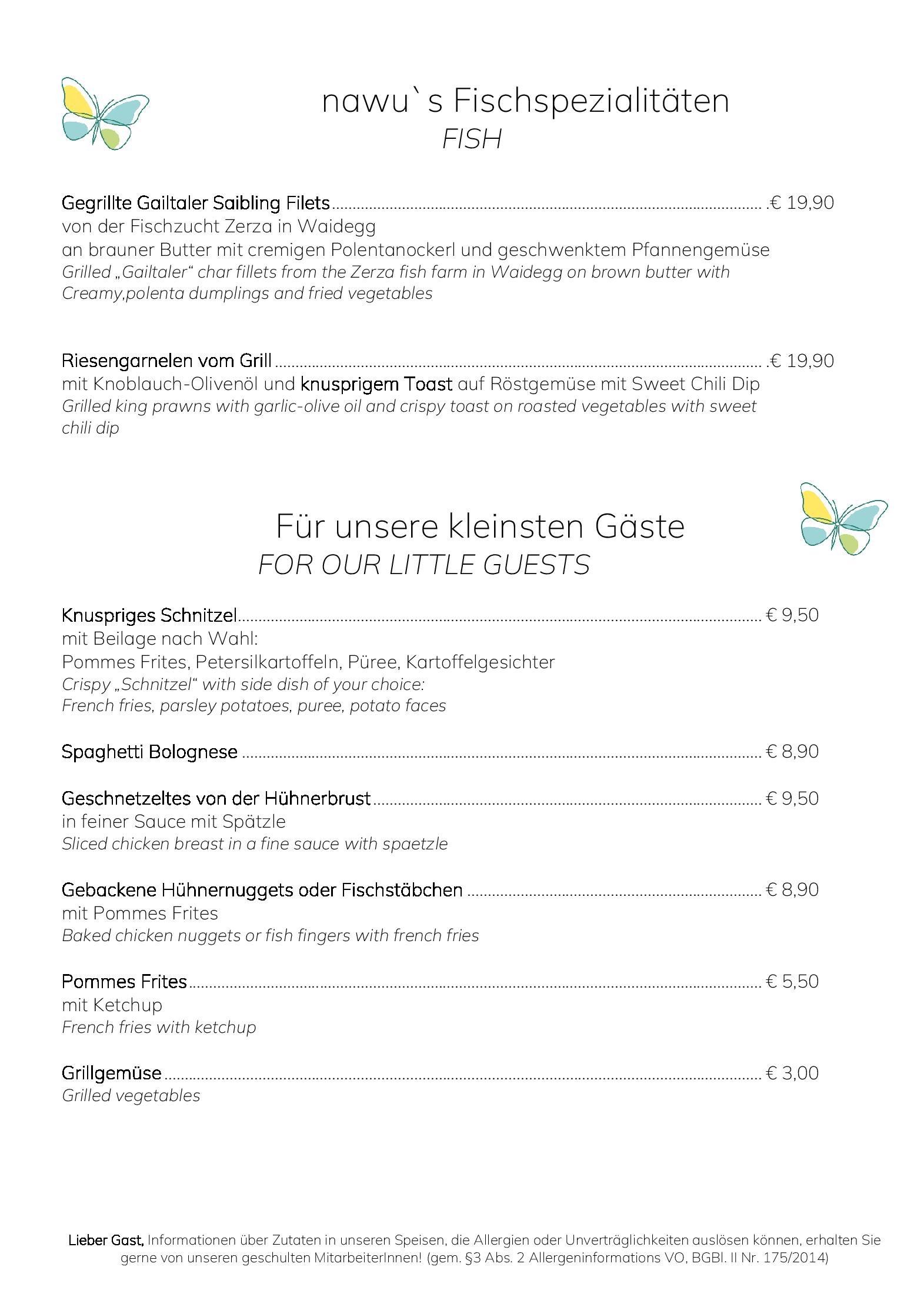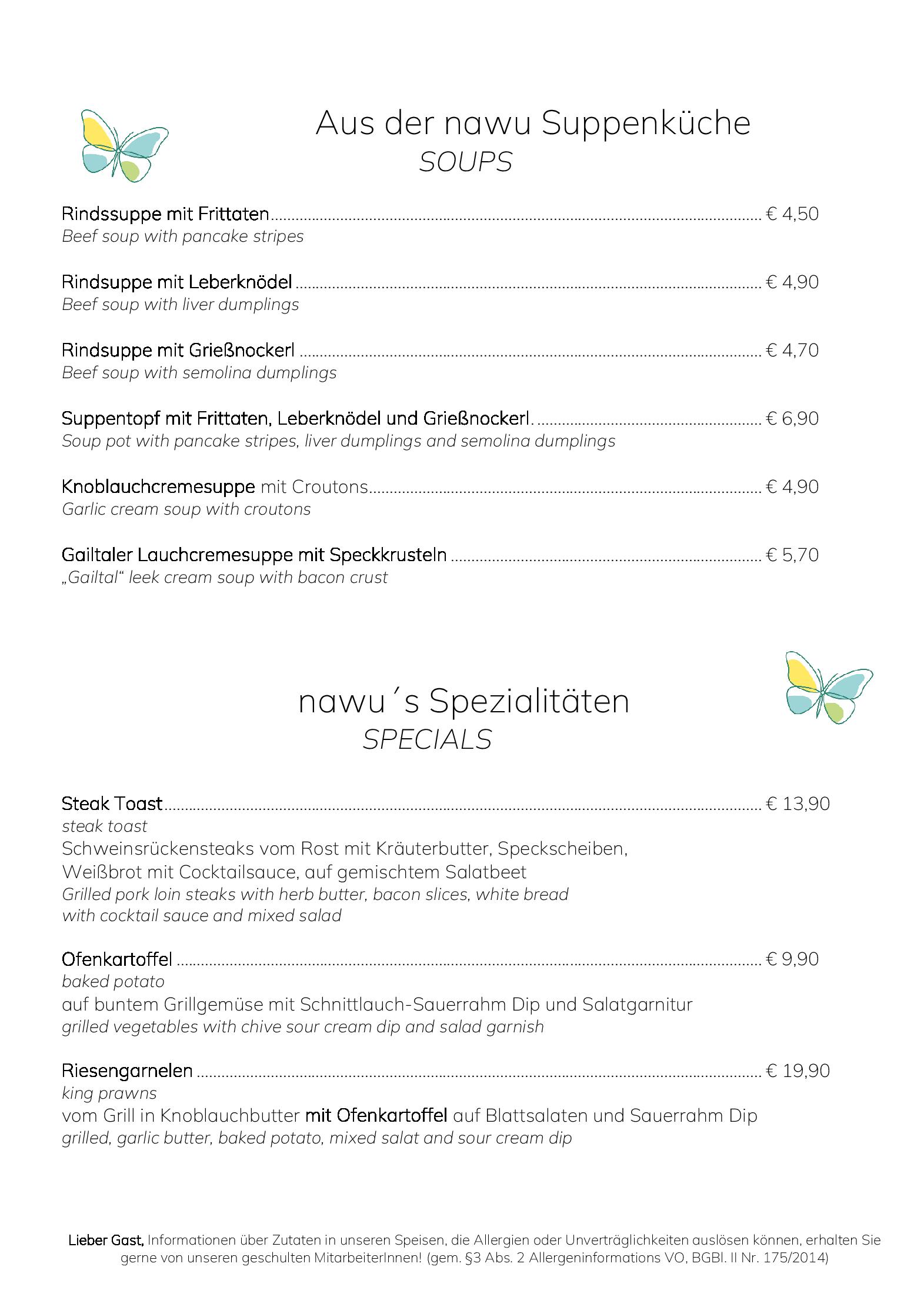 Download der Speisekarte des nawus Restaurant in Hermagor im PDF-Format