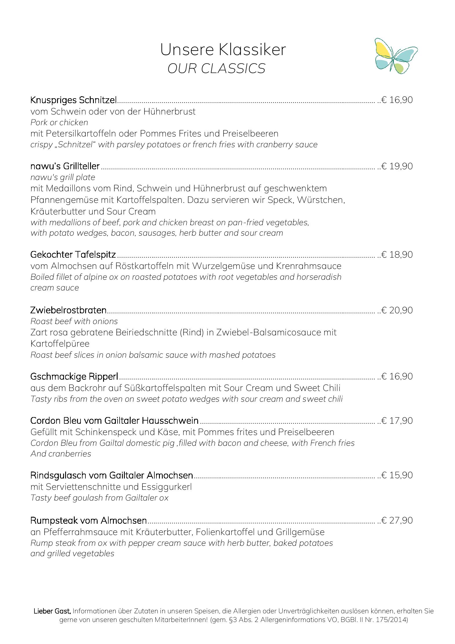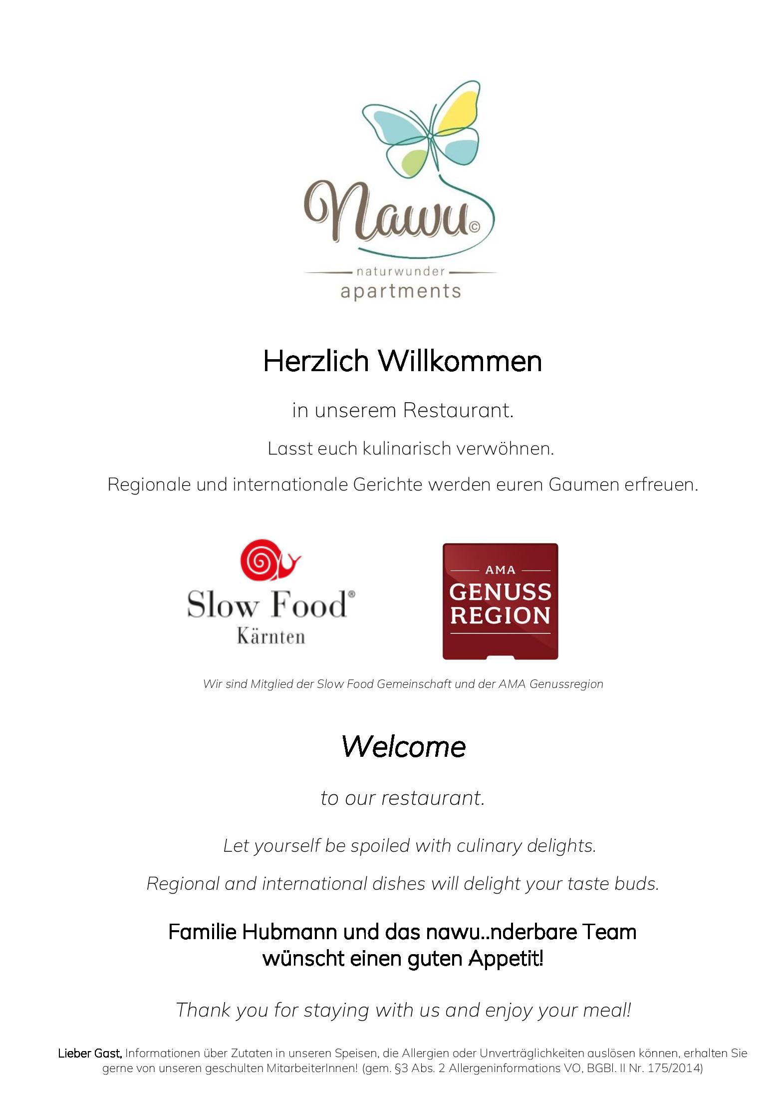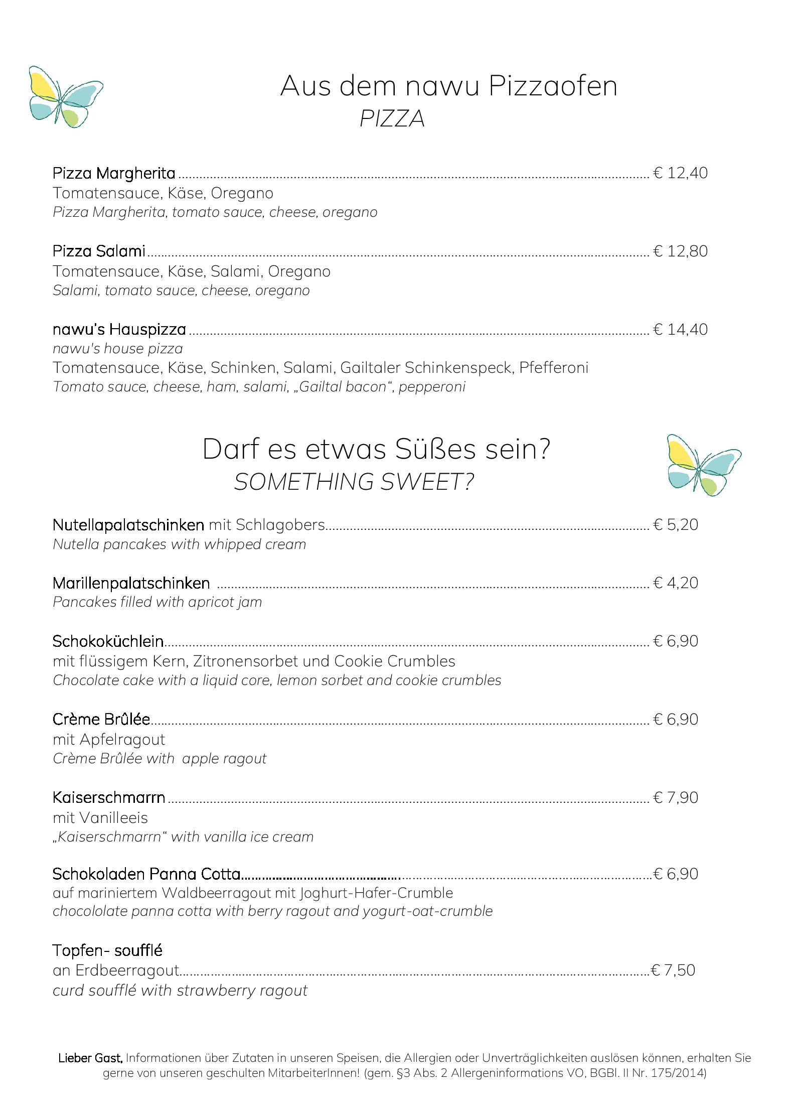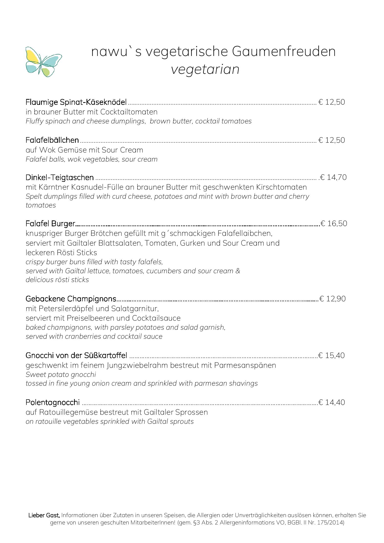 Download der Speisekarte des nawus Restaurant in Hermagor im PDF-Format