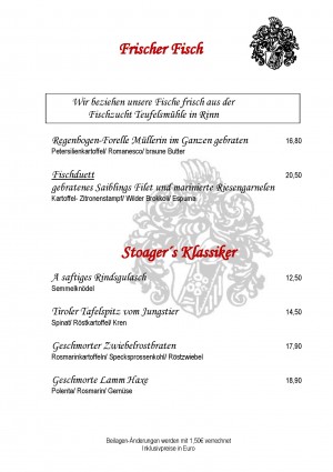 Aktuelle Speisekarte von Goldener Adler in Wattens
