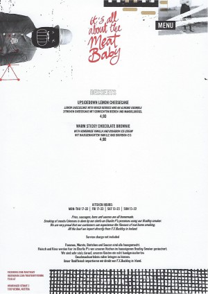 In 2017, Charlie P’s became the permanent home of the hugely popular pop-up restaurant “It’s all about the Meat Baby“. Our specialty is beef burgers and the meat is imported directly by us from the famous Irish butchers F.X. Buckleys. Our 28-day dry aged beef comes from Dexter and Hereford cattle that are pasture fed on small farms in Ireland. We also serve Vegetarian alternatives. All our food is homemade in our kitchen. We freshly bake our brioche buns, smoke our cheddar cheese, make our own sausages and our beef burgers are freshly ground every day. We do all this because we believe you can taste the difference.