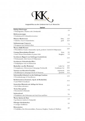 Aktuelle Speisekarte von K&K Hofspezereien in Wien