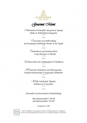 Aktuelle Speisekarte von Hotel Salzburgerhof in Zell am See